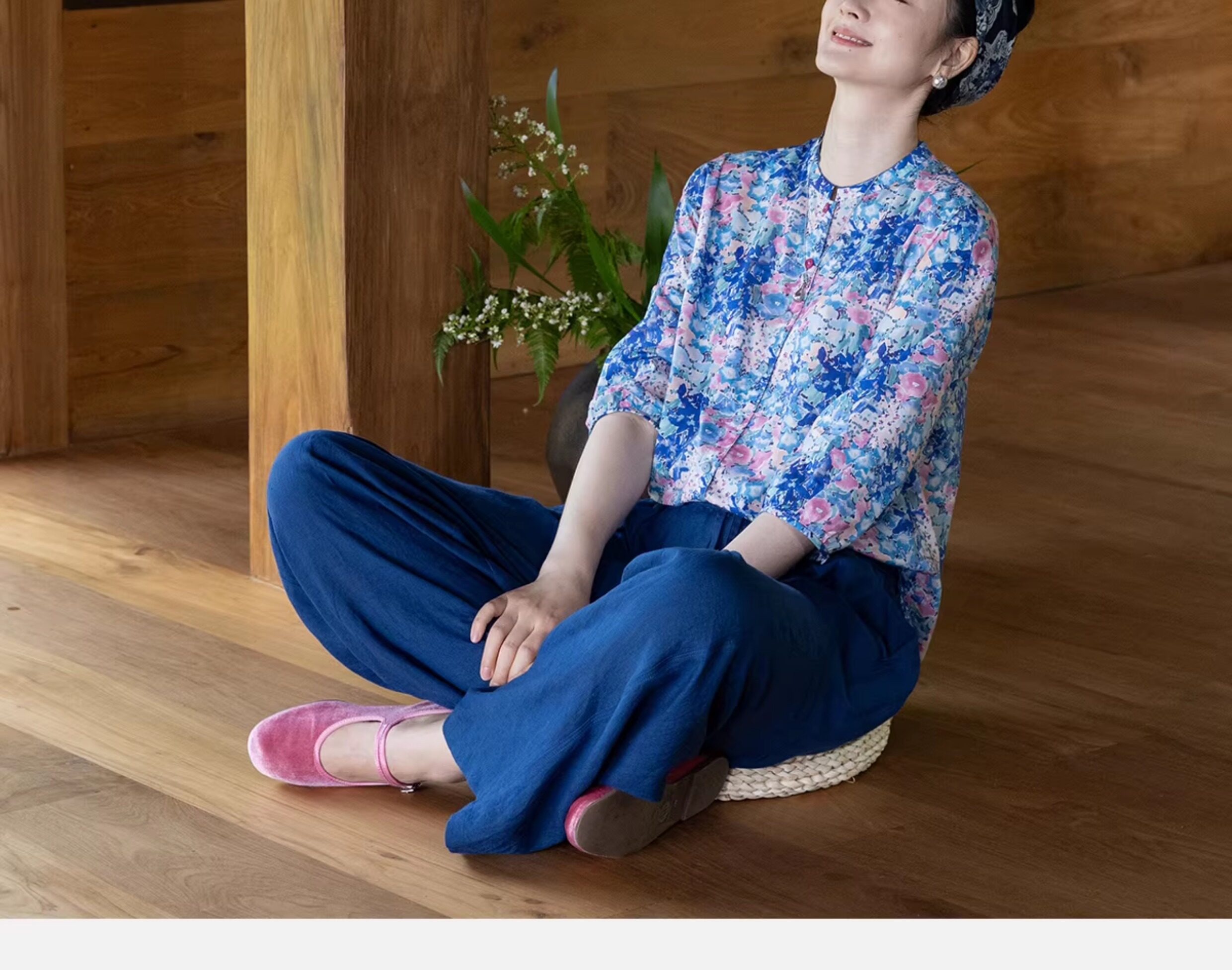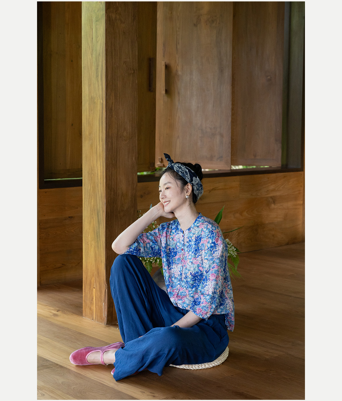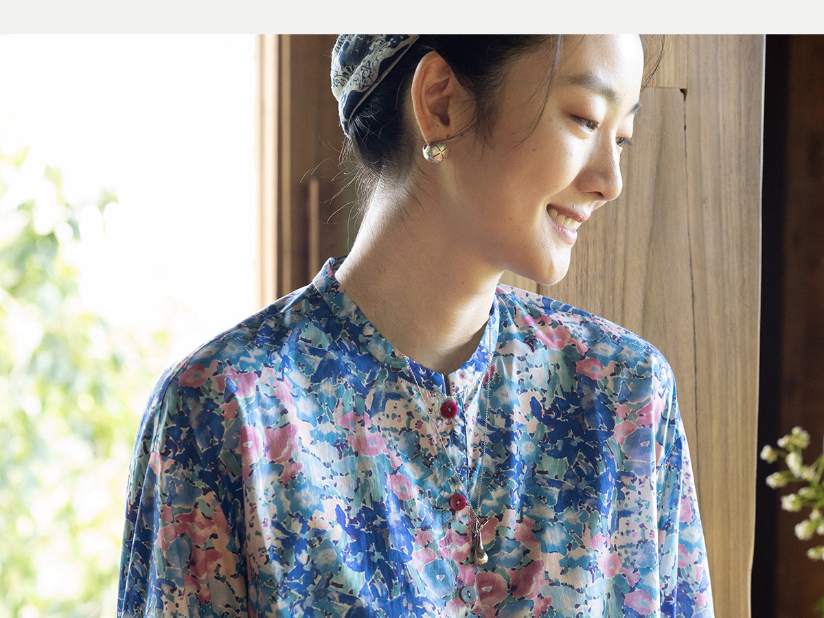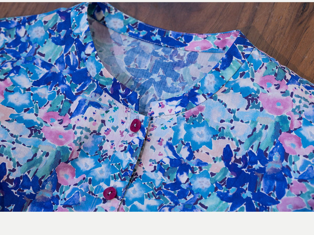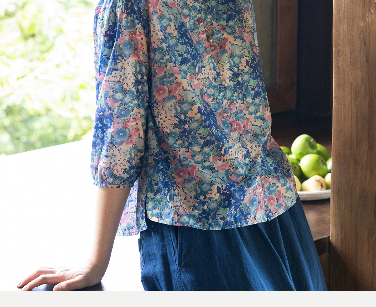 牧衣游原创 80支印花纯棉衬衫新款文艺通勤宽松百搭休闲衬衣 微雨