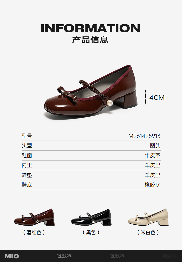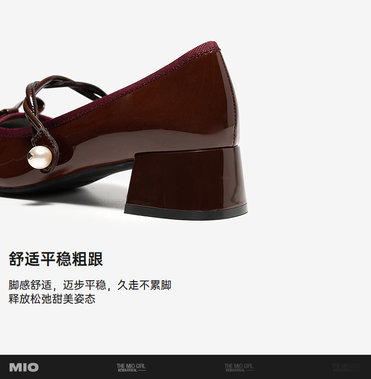 MIO米奥玛丽珍鞋2026春季新款圆头粗跟一字带扣带珍珠蝴蝶结女鞋M261425913