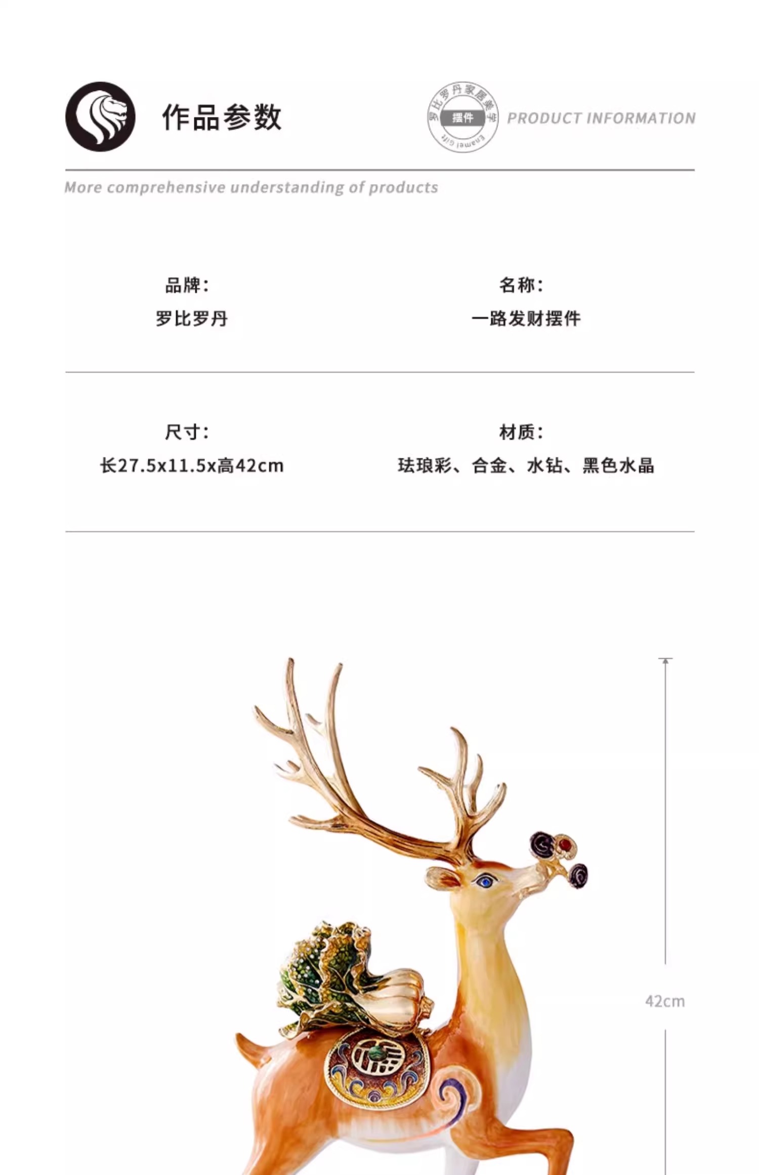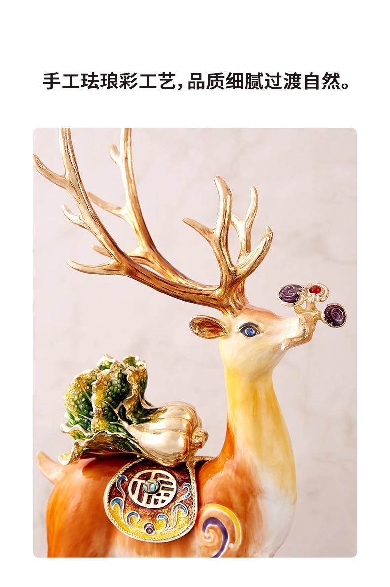 罗比罗丹一路发财摆件创意客厅鹿摆件珐琅彩工艺软装饰品一路发财摆件