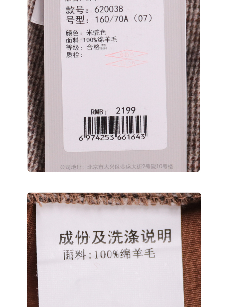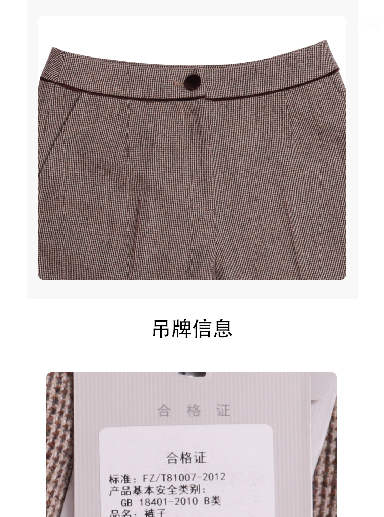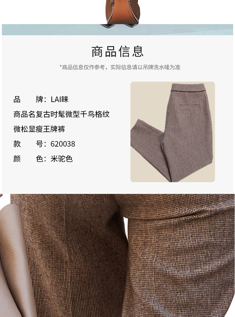 LAI睐复古时髦微型千鸟格纹微松显瘦王牌裤620038