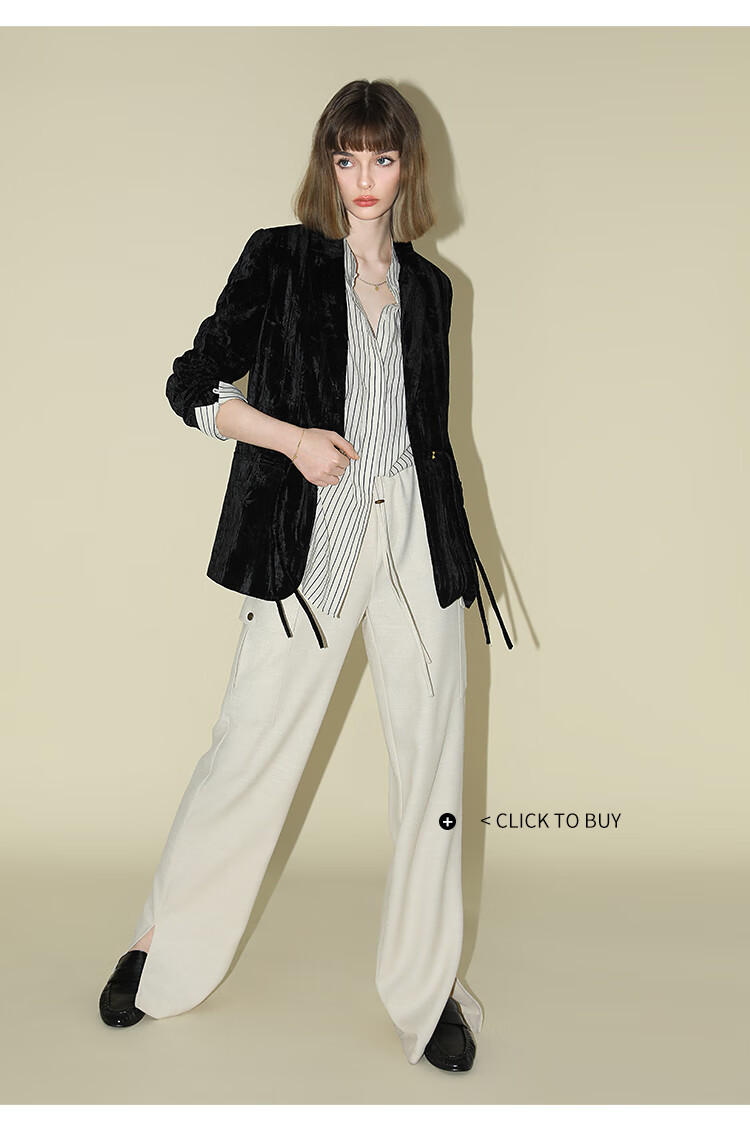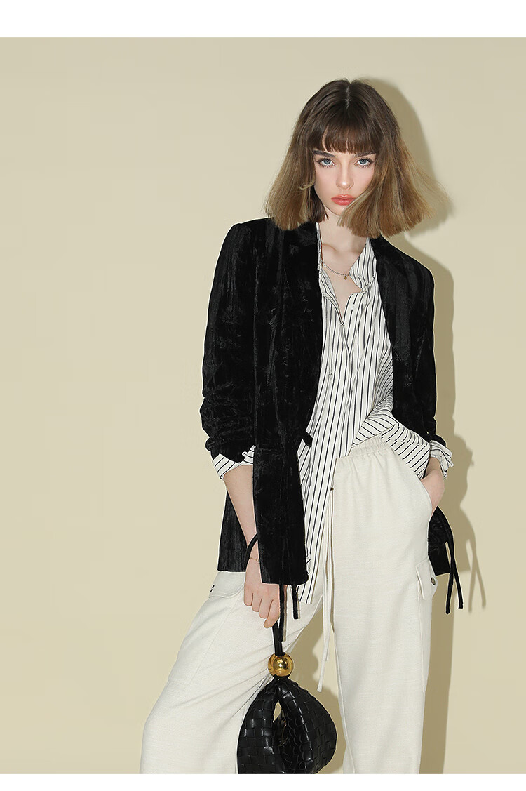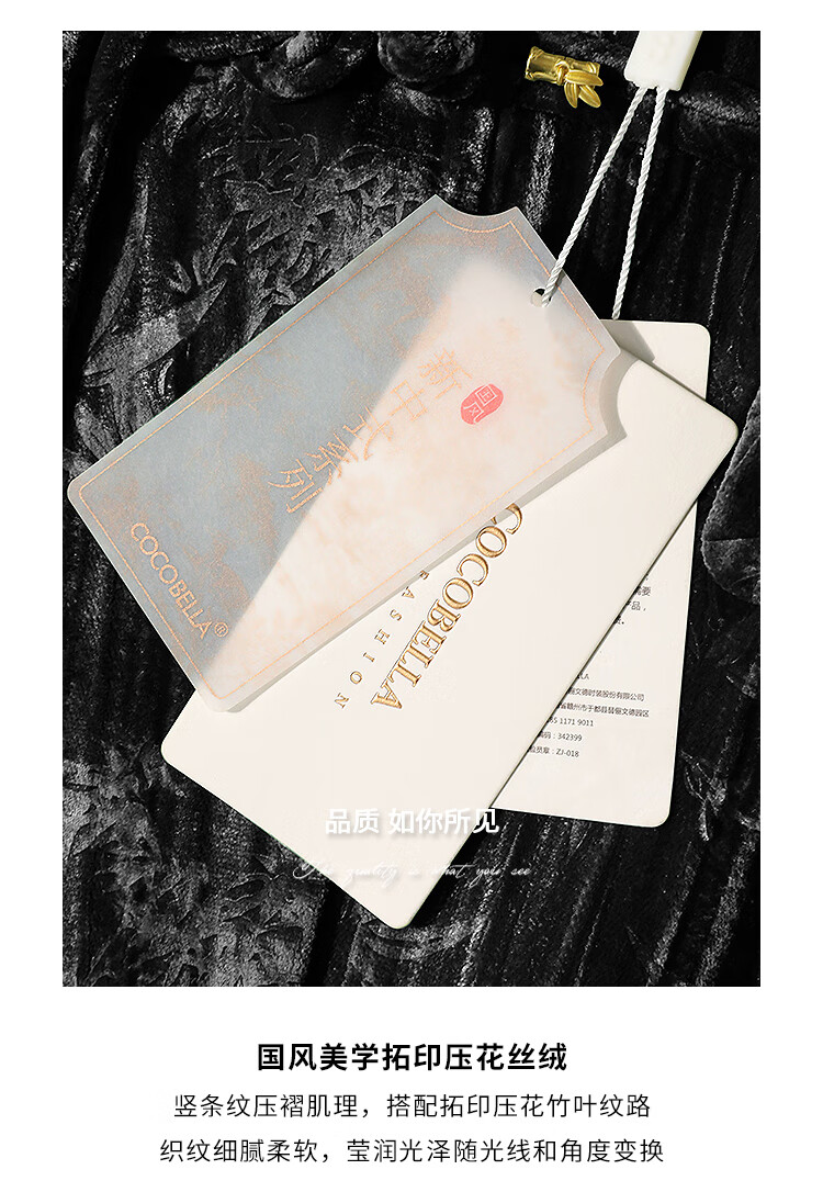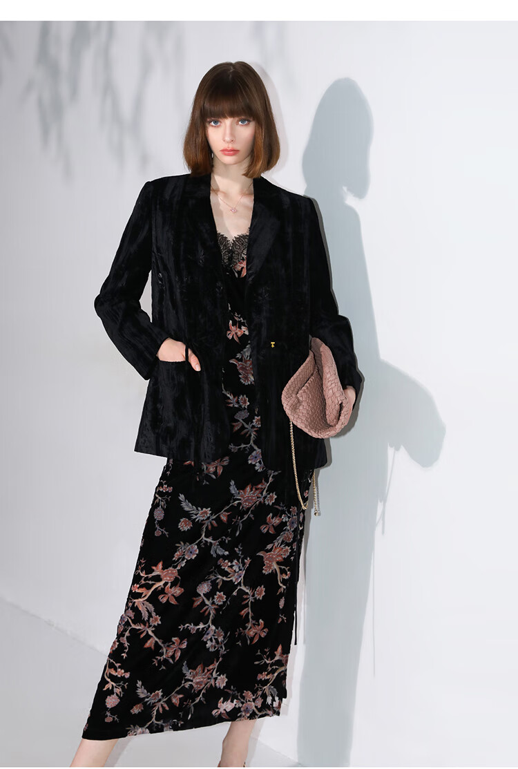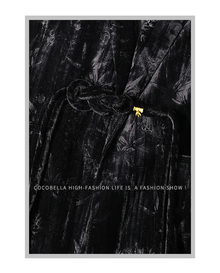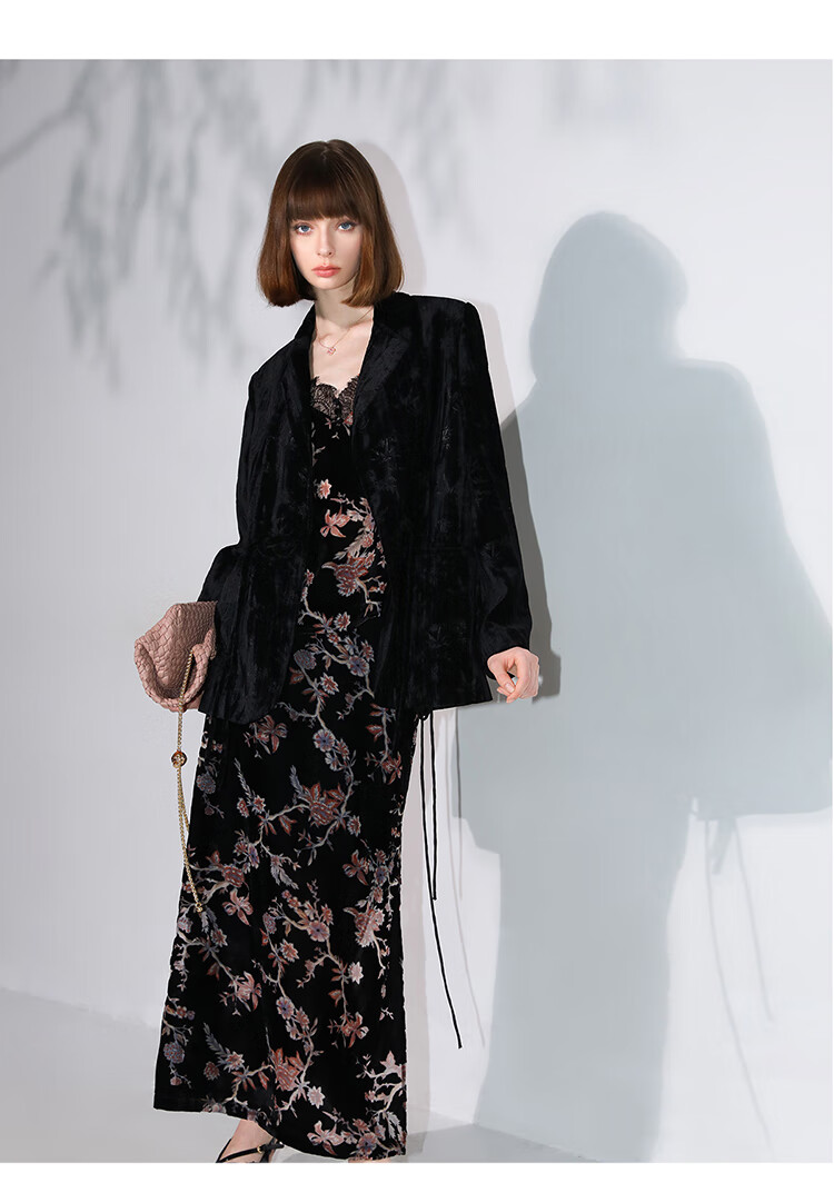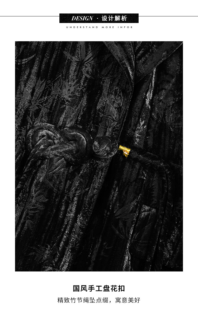 【有赞】COCOBELLA新中式竹叶拓印压褶丝绒西装女国风盘扣外套SI3007B