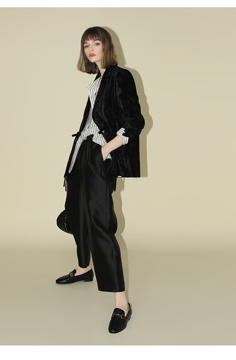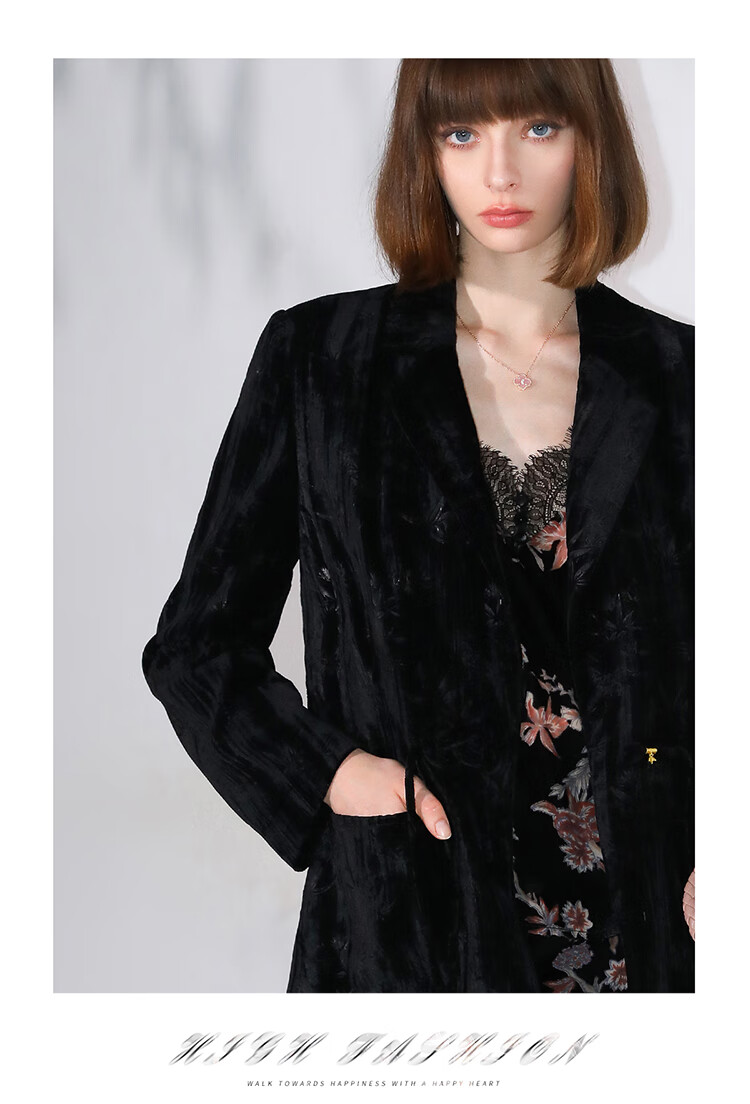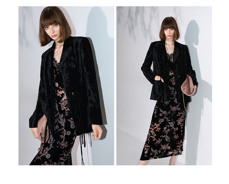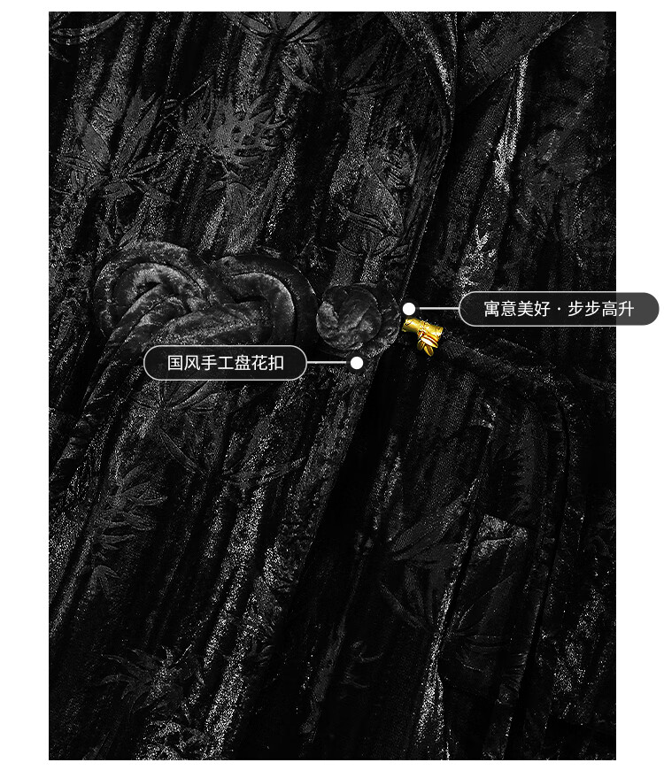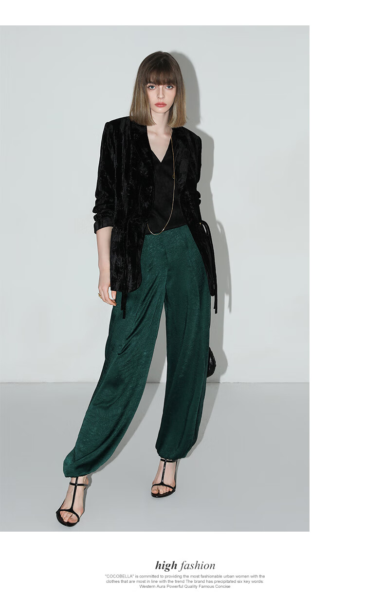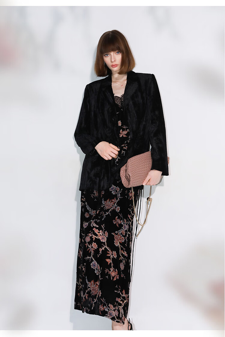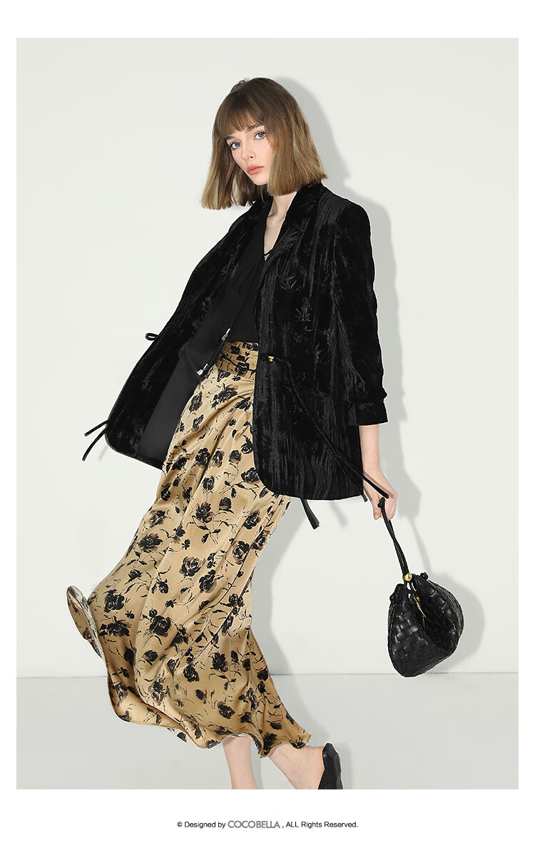 【有赞】COCOBELLA新中式竹叶拓印压褶丝绒西装女国风盘扣外套SI3007B