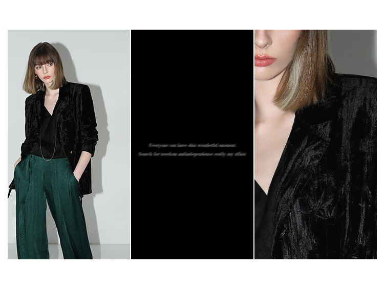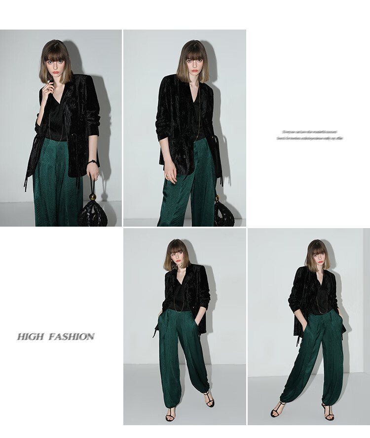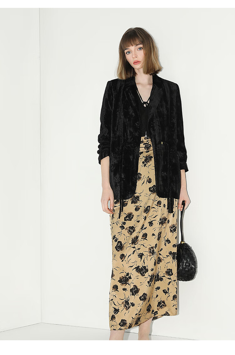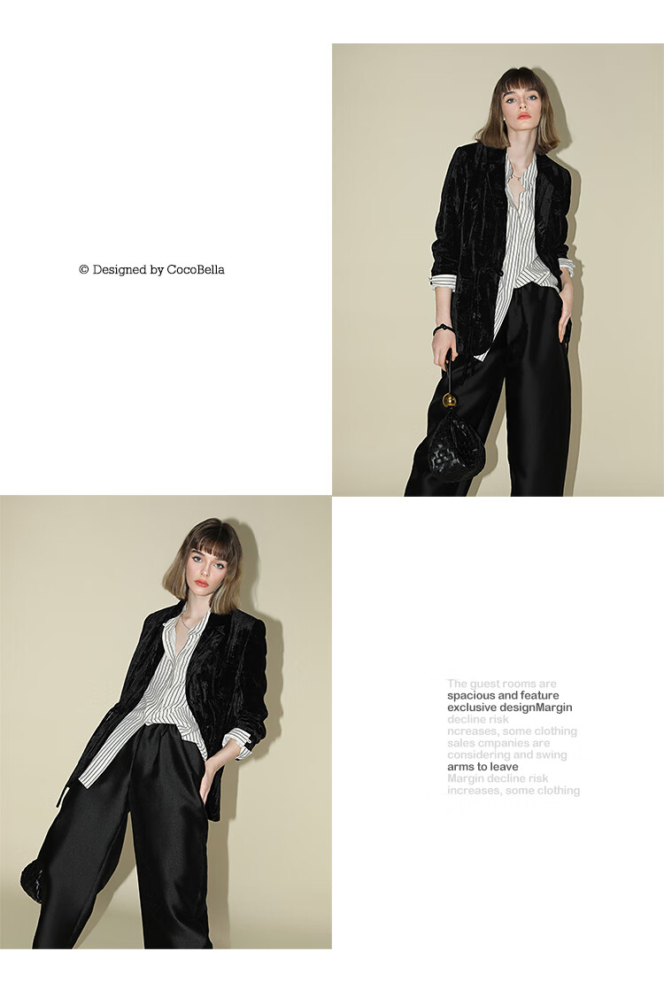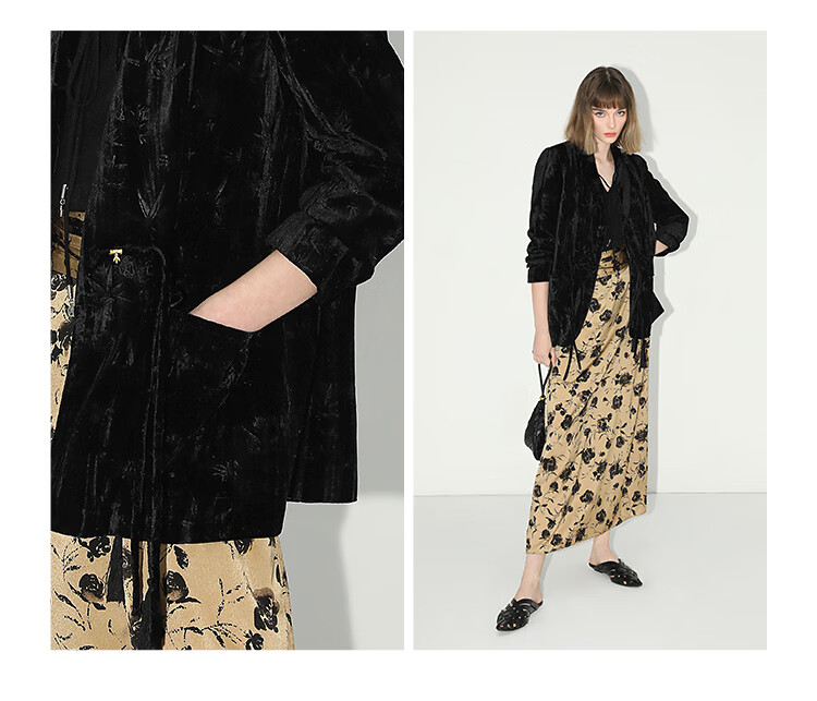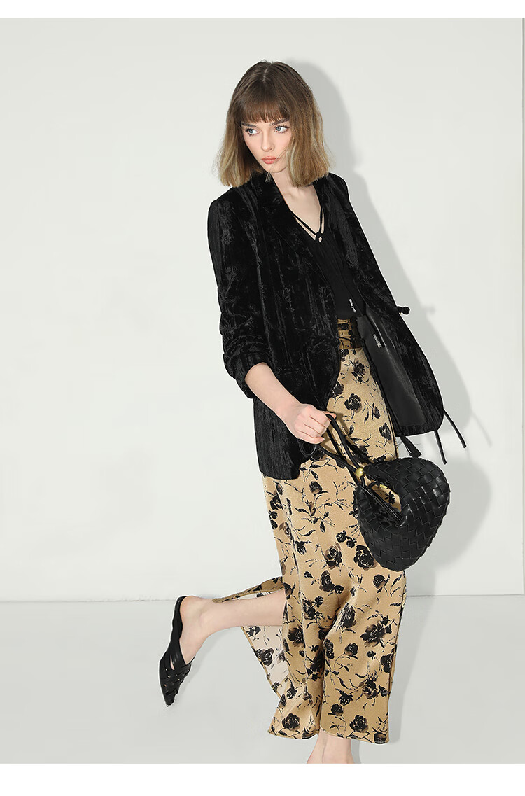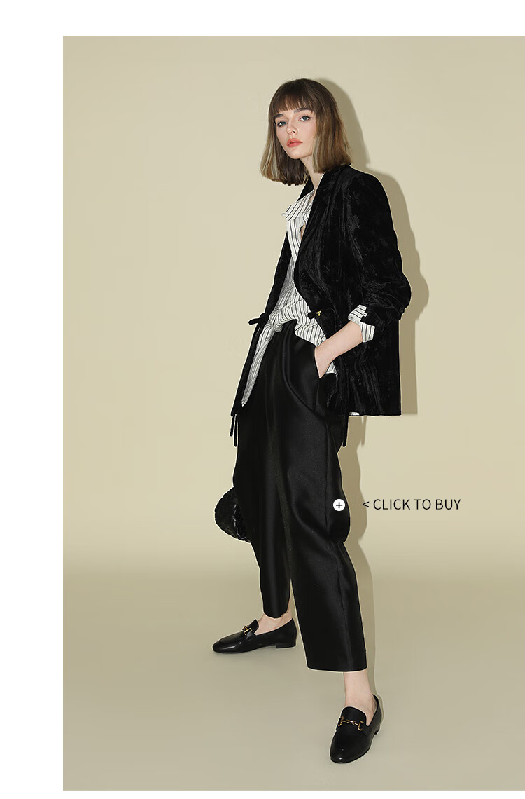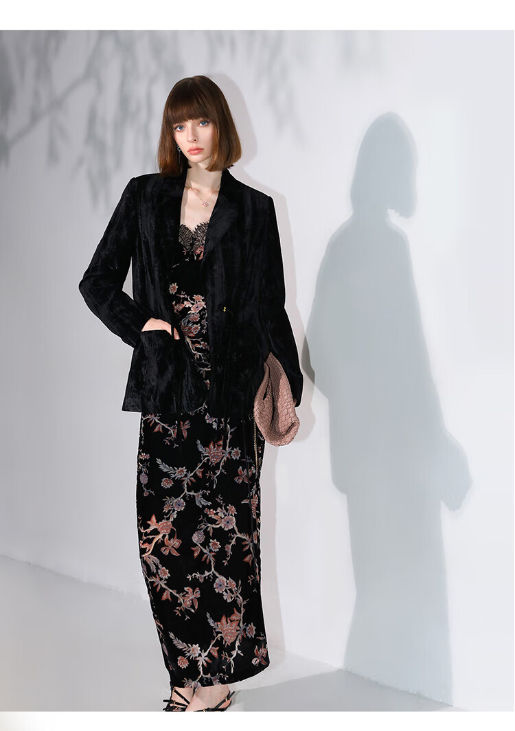 【有赞】COCOBELLA新中式竹叶拓印压褶丝绒西装女国风盘扣外套SI3007B