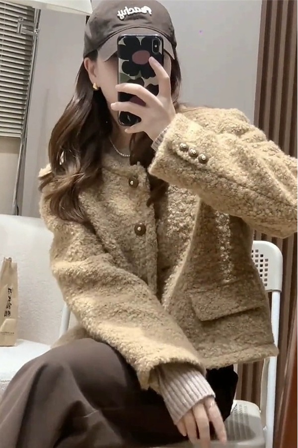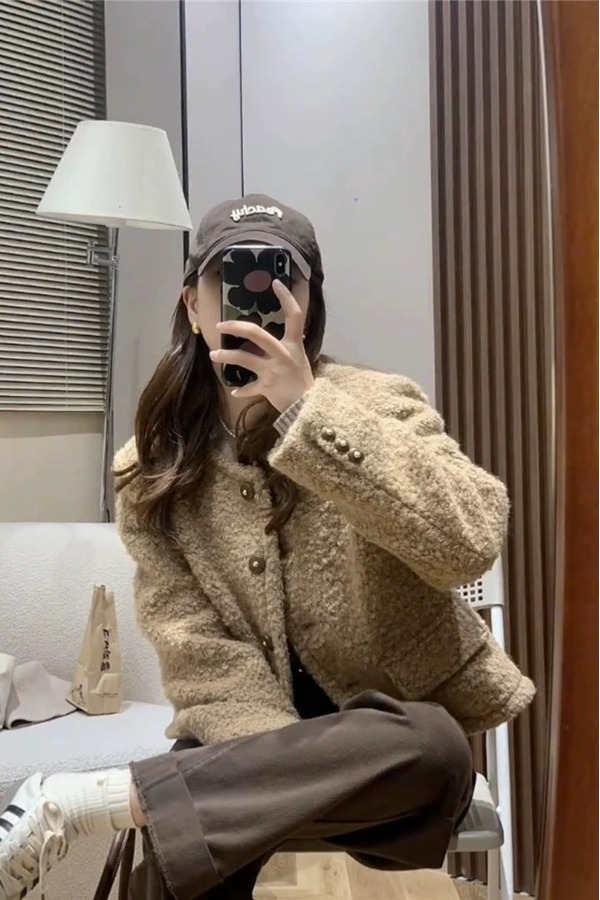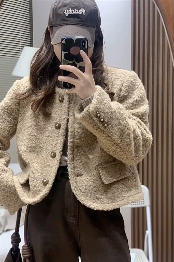 amadella 咖色圆领小香风短款外套 19408