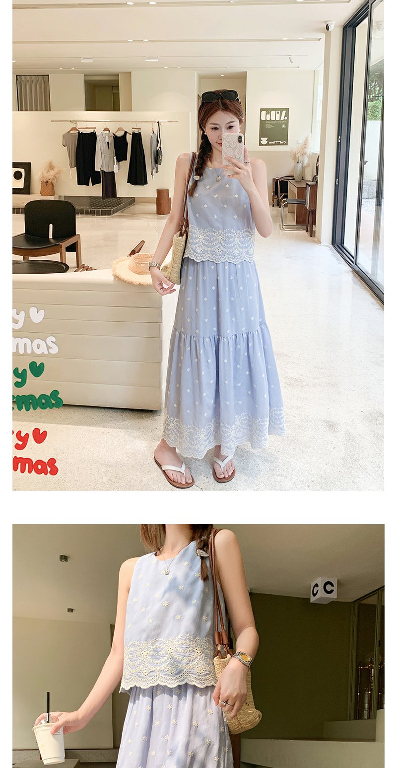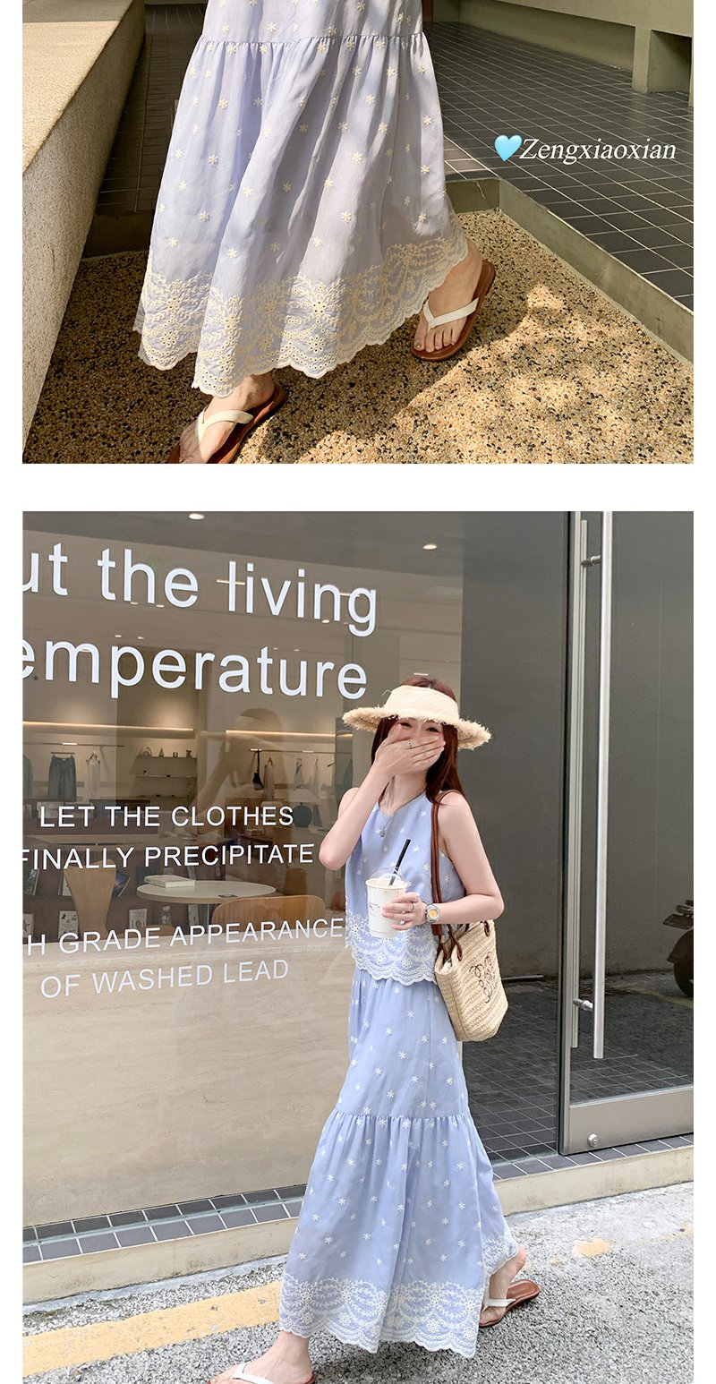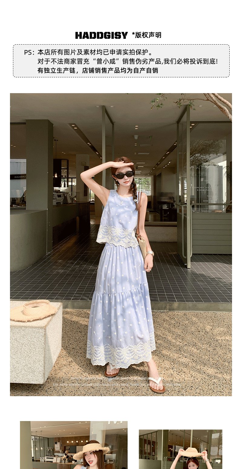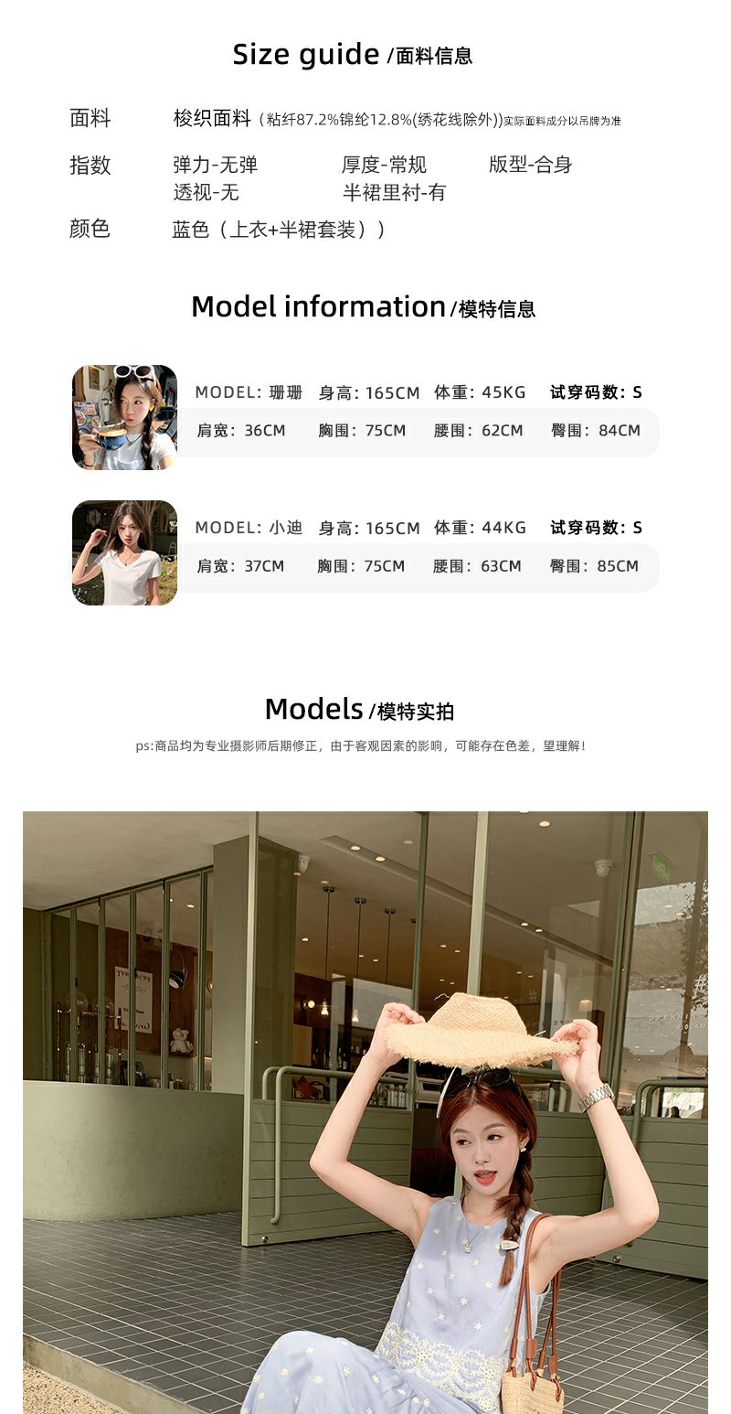 <曾小咸推荐>温柔风绣花无袖上衣绣花半身裙