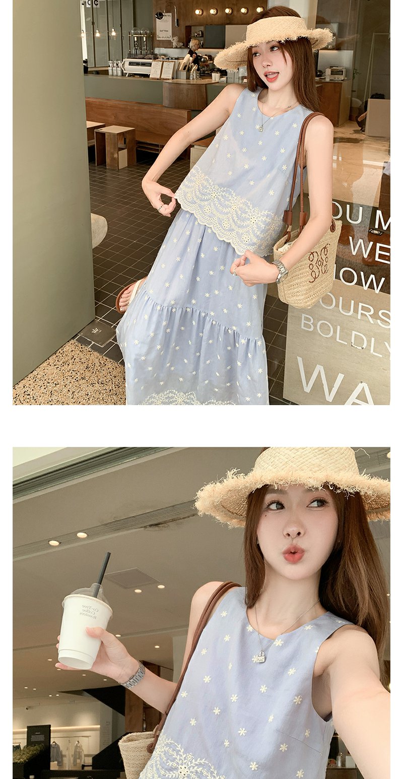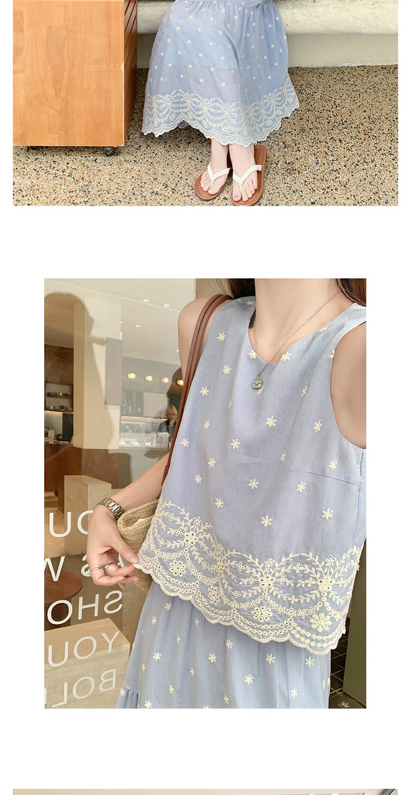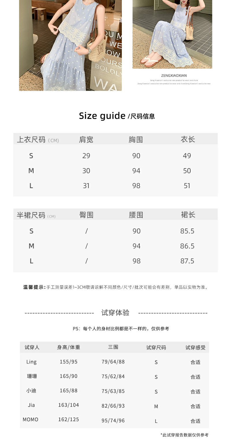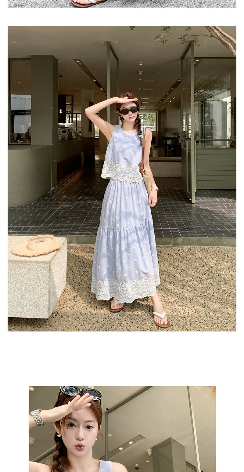 <曾小咸推荐>温柔风绣花无袖上衣绣花半身裙