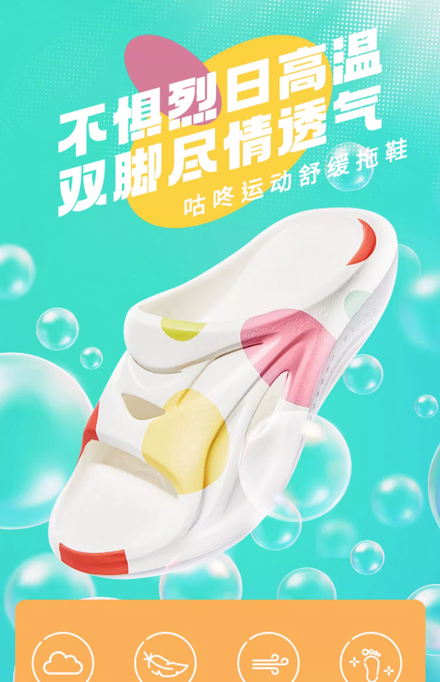CODOON咕咚运动舒缓拖鞋加厚鞋底超轻量化减震舒缓修复国潮运动拖鞋 S621201