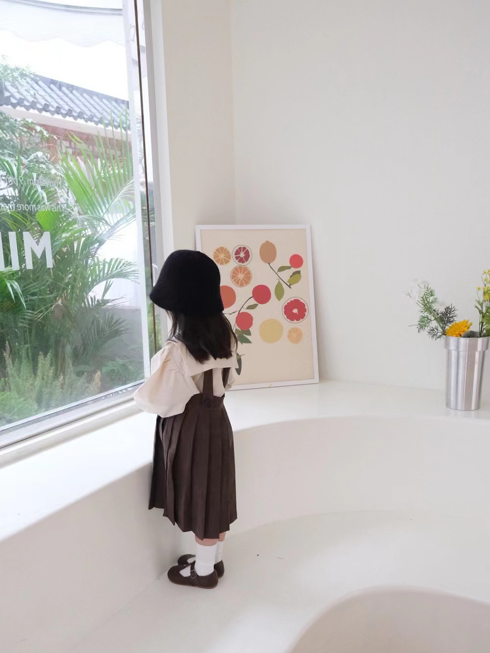 可爱的收口袖搭配方便穿脱的百搭百褶裙