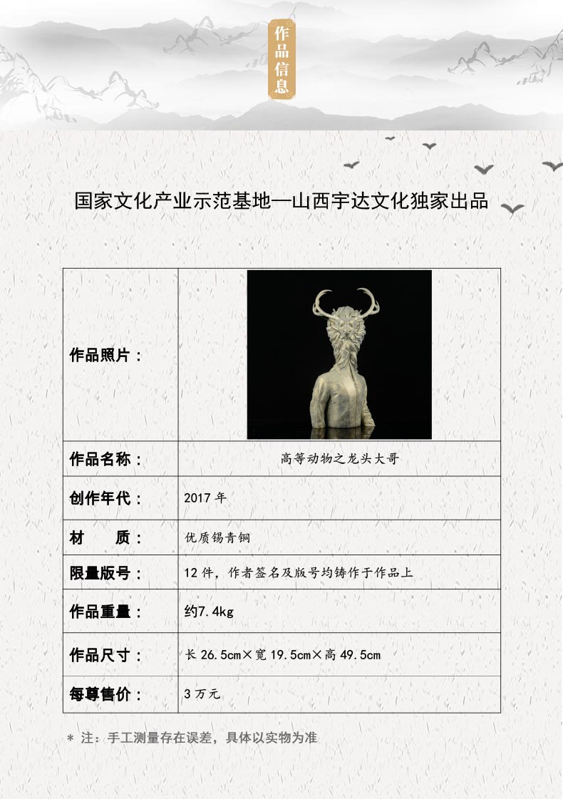 宇达青铜文化 限量12版 名家艺术品 《高等动物之龙头大哥》 作者:毛锎 高49.5cm