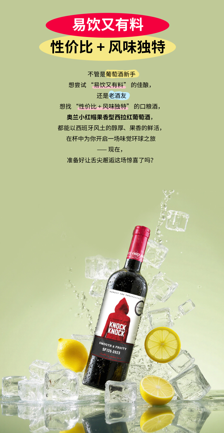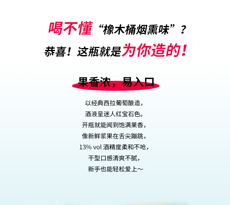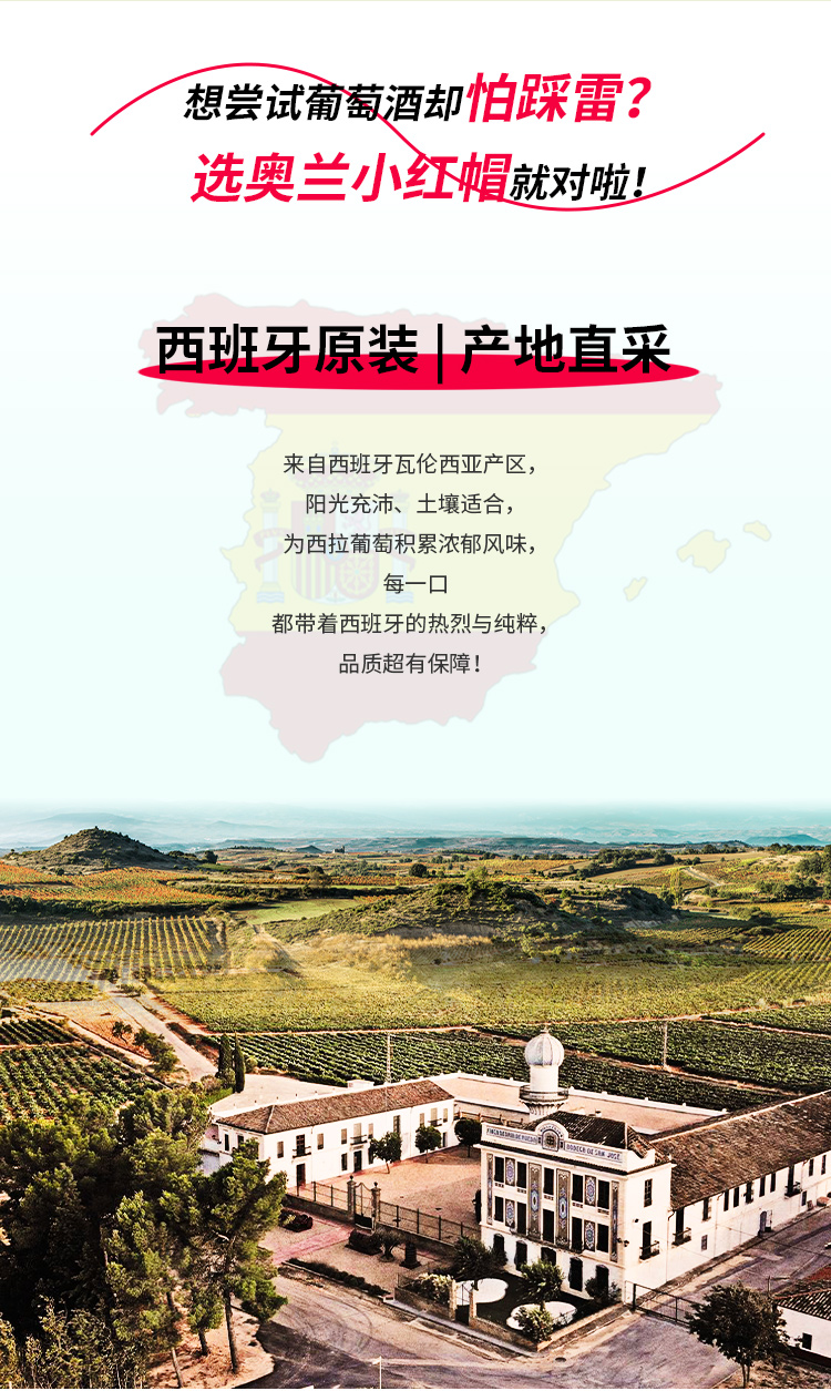 【新品】西班牙进口 奥兰小红帽果香型西拉干红葡萄酒(AI135) 13度750ml 新手优选 不酸不涩 果香更浓郁