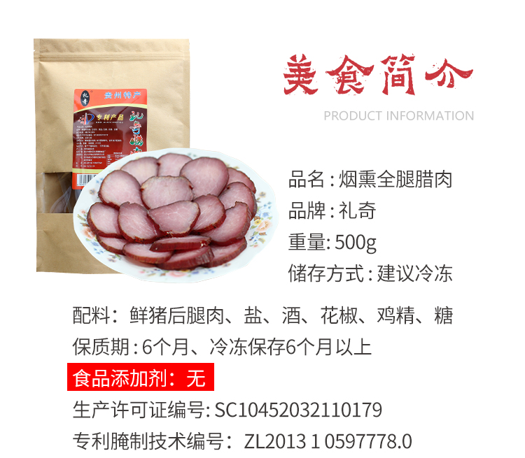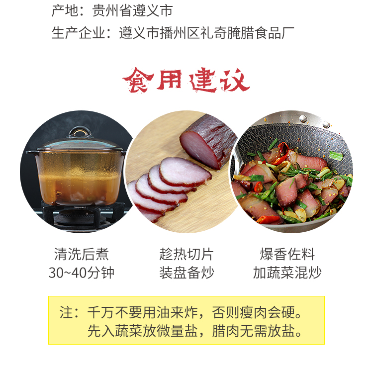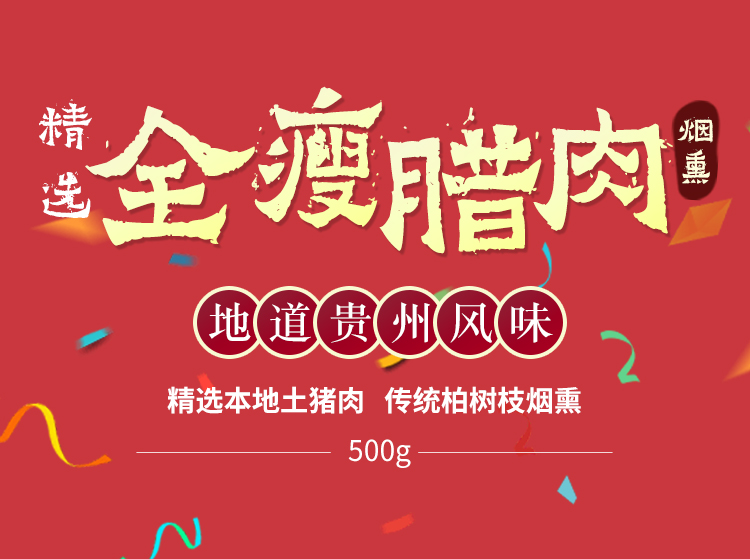 礼奇贵州烟熏腊肉纯瘦肉500g