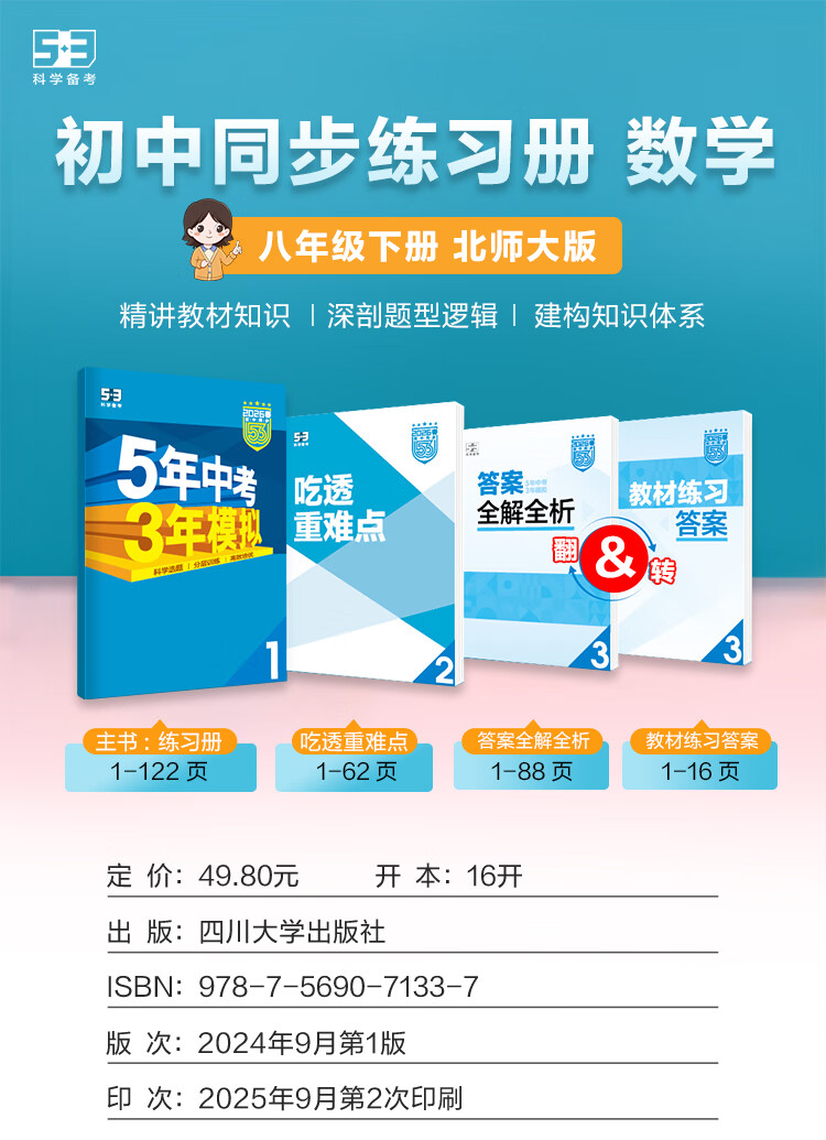 五年中考三年模拟八年级上册语文数学英语物理化学道德与法治历史5年中考3年模拟初二练习册