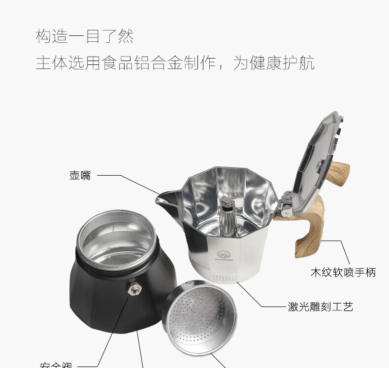 错山 意式摩卡壶 户外摩卡手冲咖啡壶 (单阀) MM812