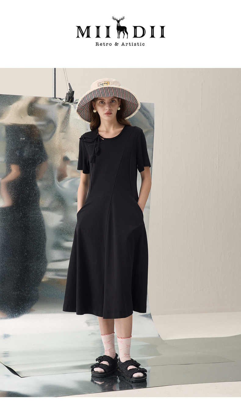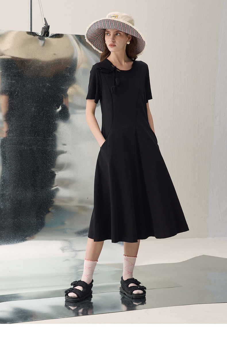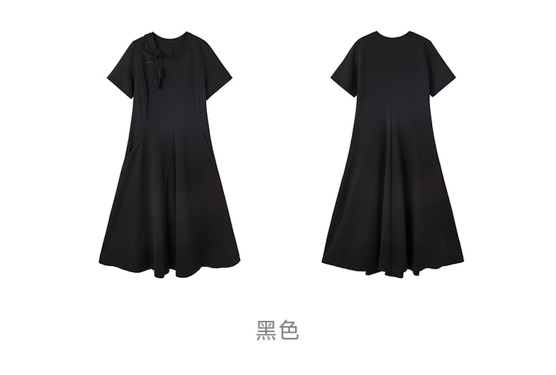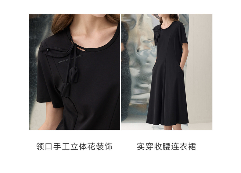 谜底收腰连衣裙短袖2026年春季新品立体花不规则长裙女261ML0084
