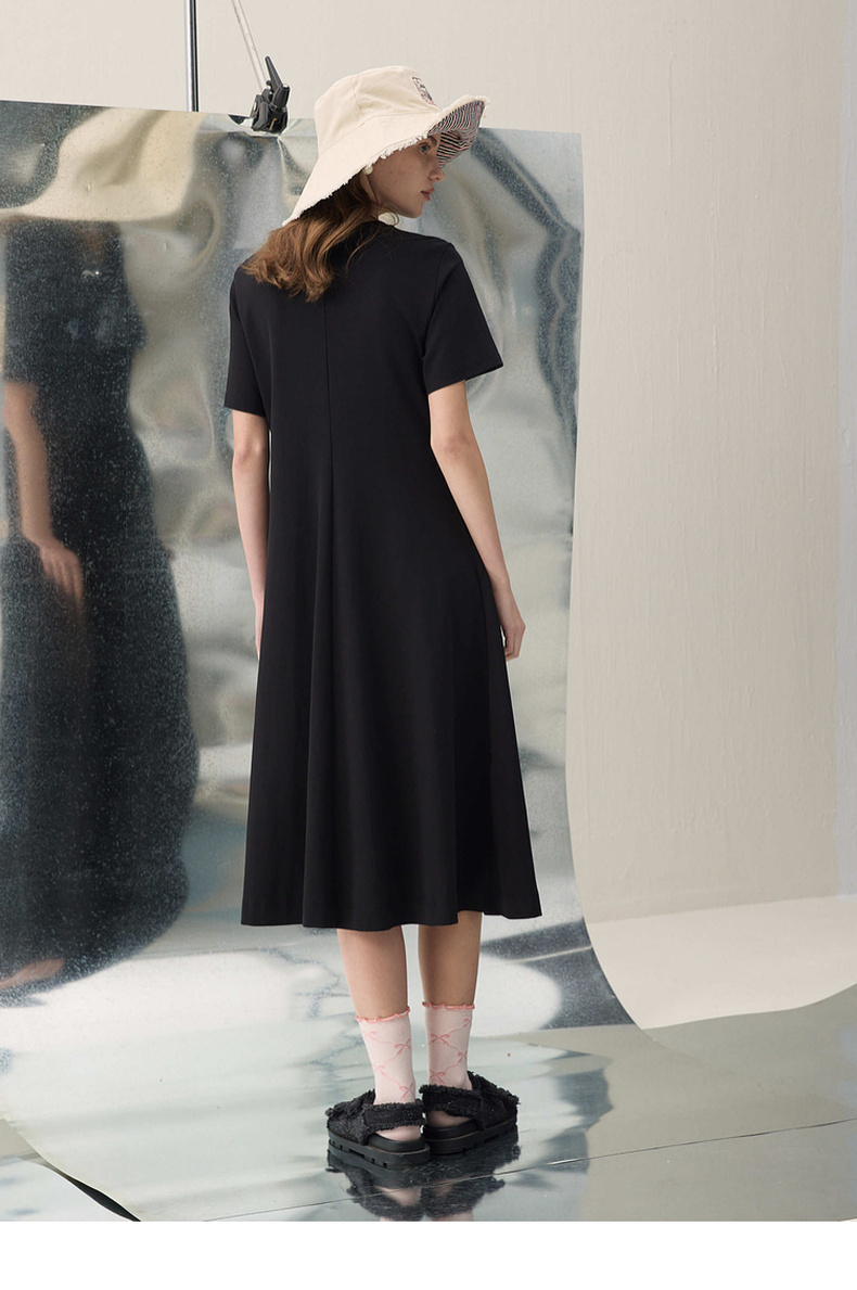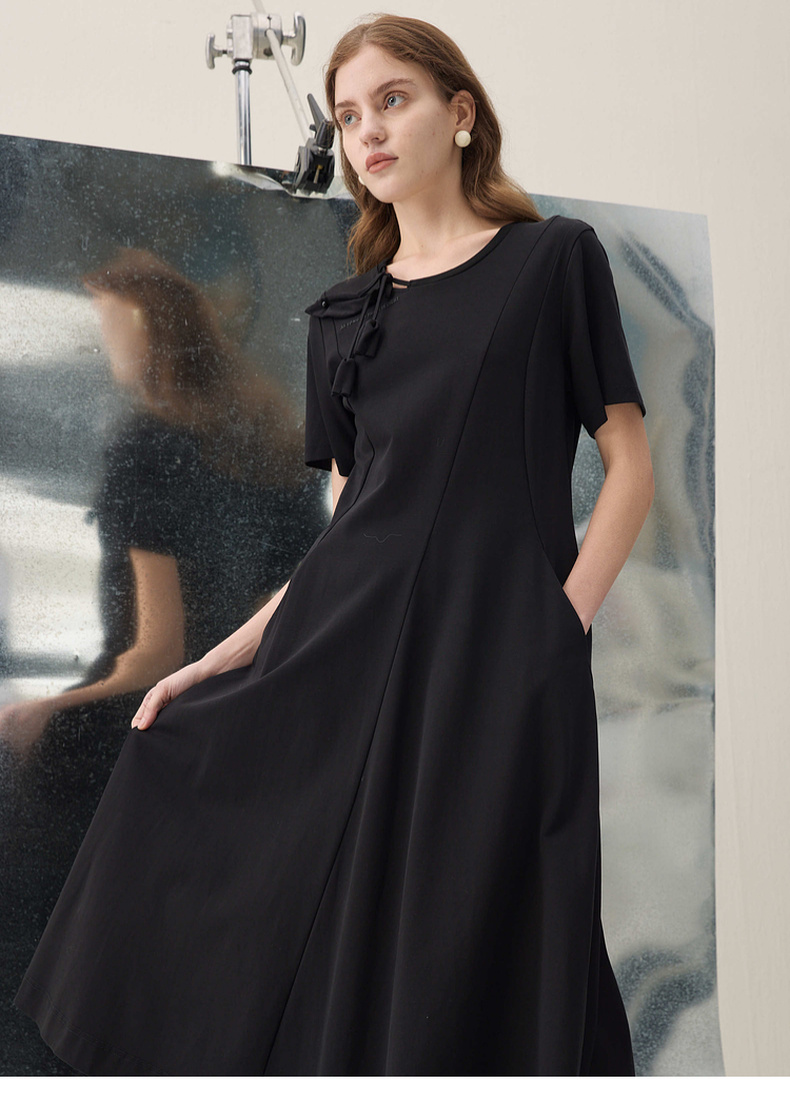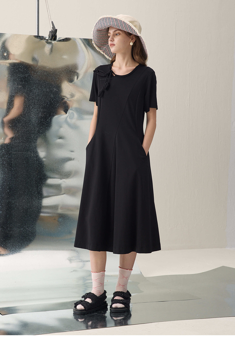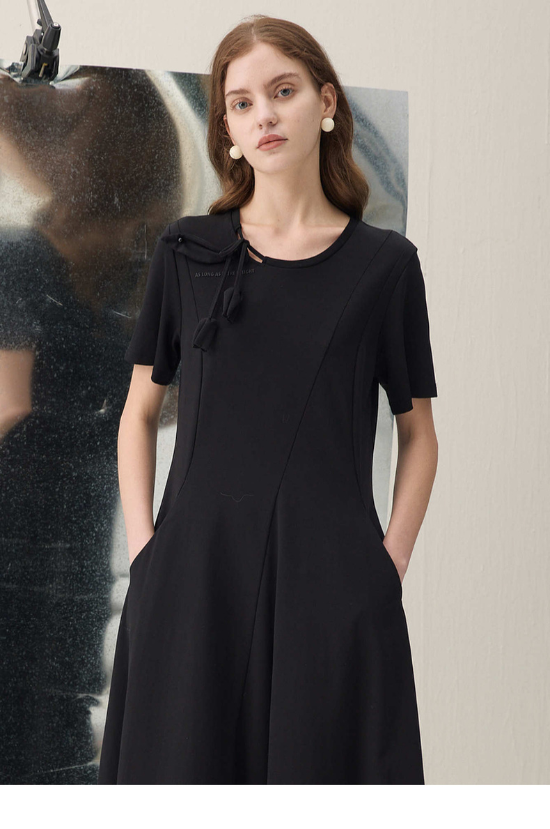 谜底收腰连衣裙短袖2026年春季新品立体花不规则长裙女261ML0084