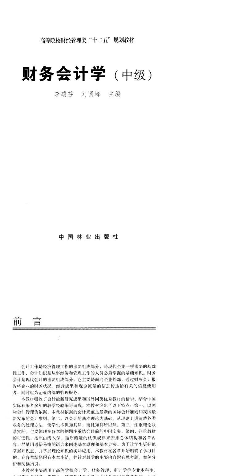 财务会计学:中级 6552 中国林业出版社教材
