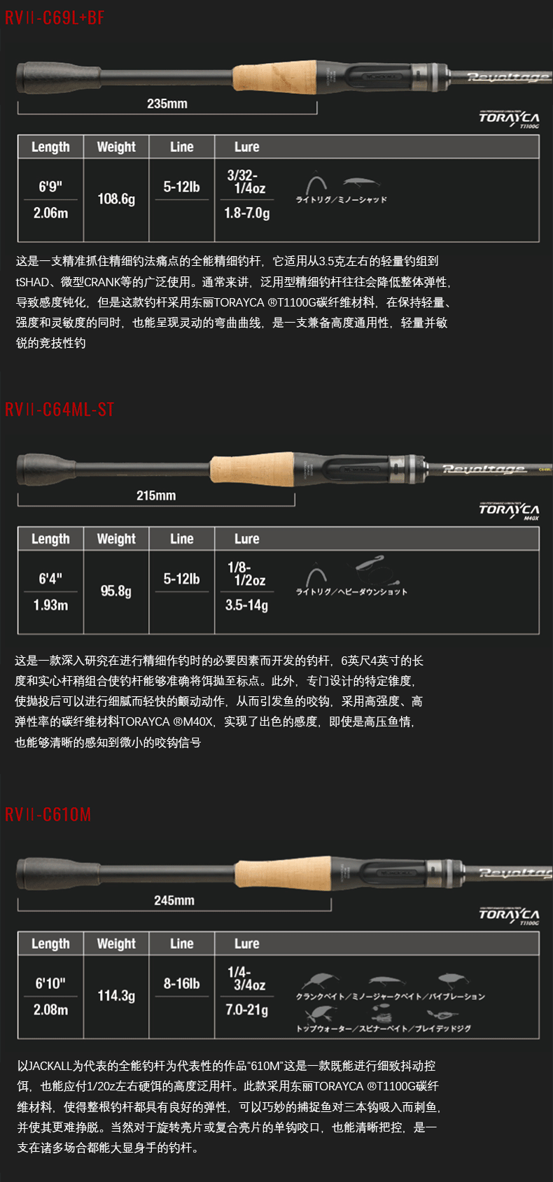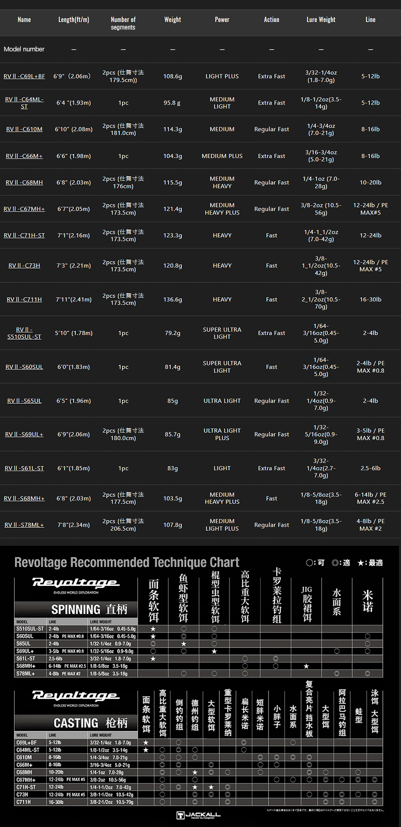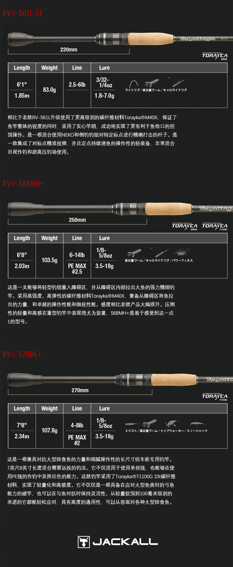 JACKALL负电压二代REVOLTAGE-Ⅱ2023款RV2软木手把独节路亚竿