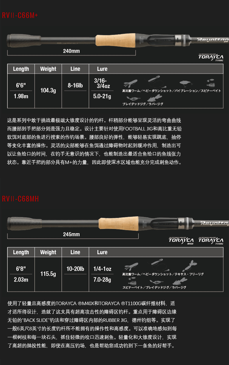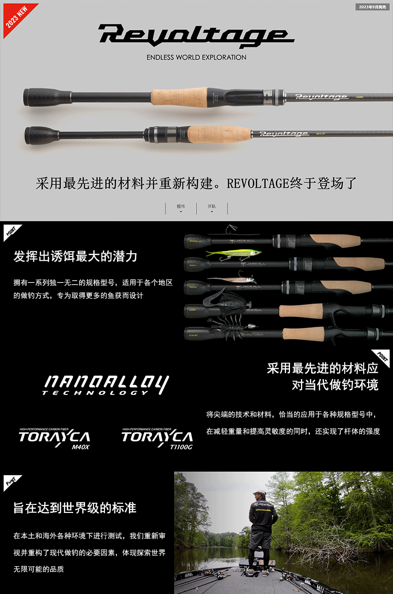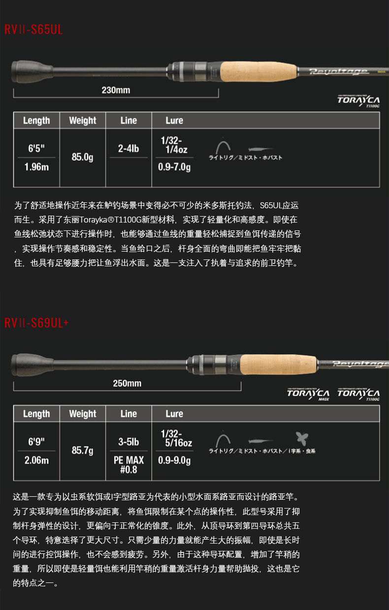 JACKALL负电压二代REVOLTAGE-Ⅱ2023款RV2软木手把独节路亚竿