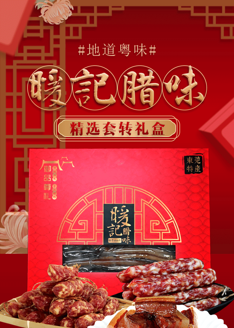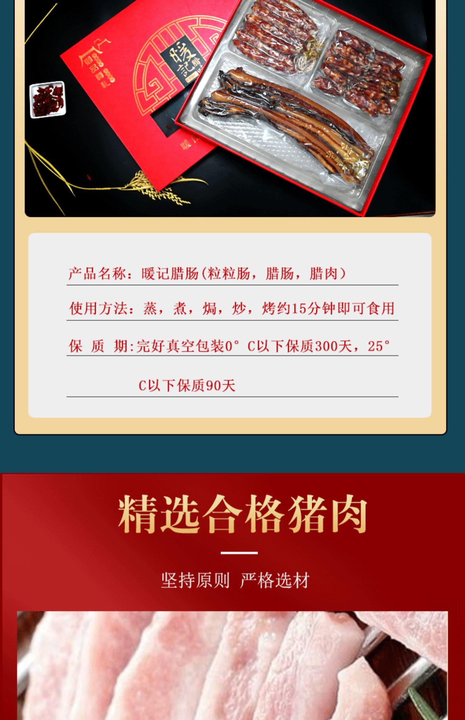 吃货优选| 定制款 礼盒3斤 暖记广式腊味 优质腊肠1斤 优质粒粒肠1斤 浓香腊肉1斤