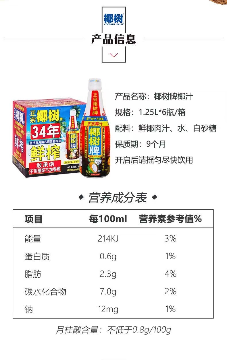 正宗椰树牌椰汁1.25升