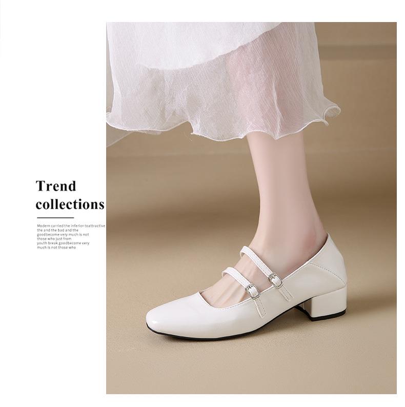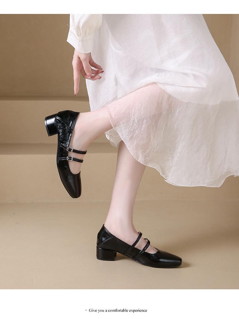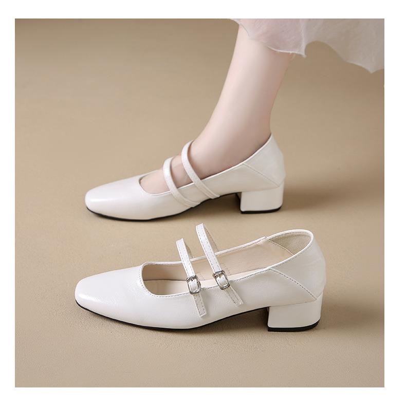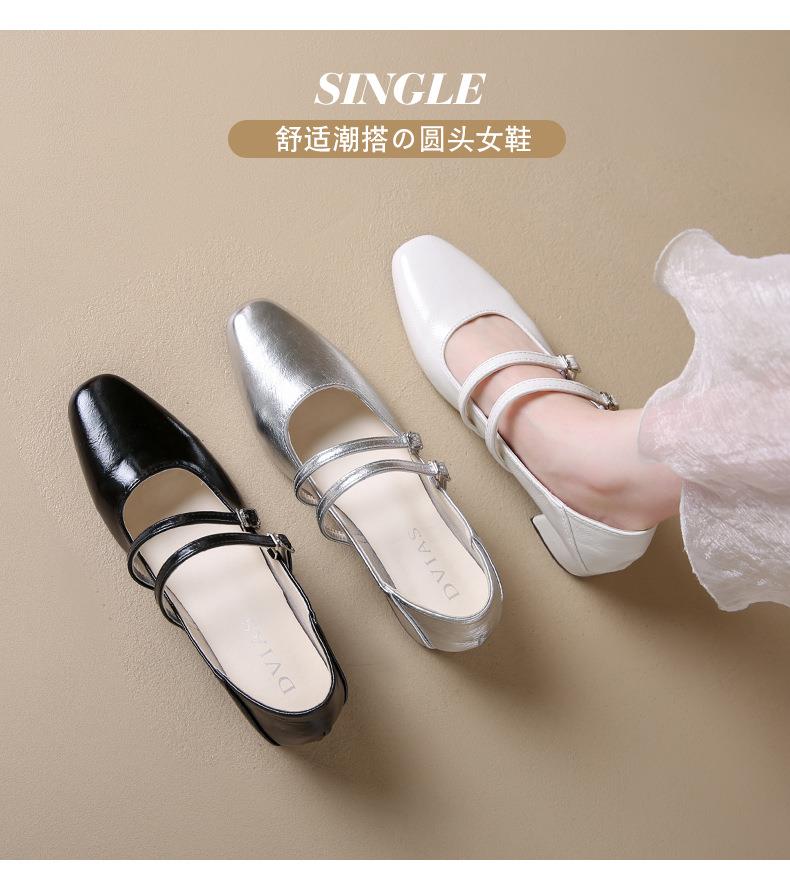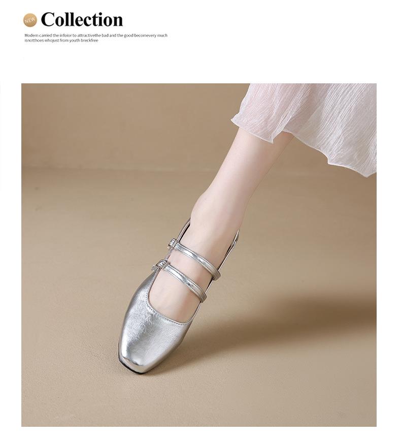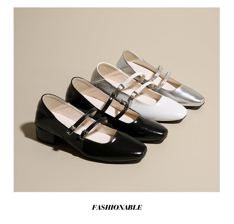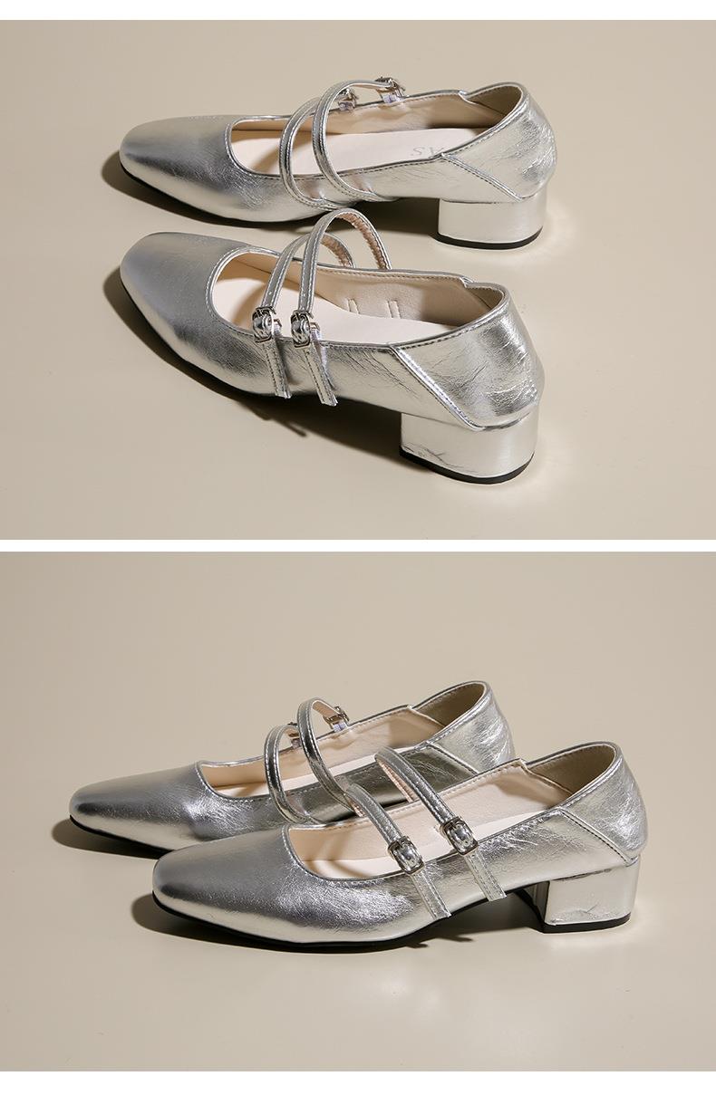 【新贵玛丽珍】2026银色浅口粗跟单鞋女春秋新款韩版法式气质仙女风温柔通勤粗跟玛丽珍鞋