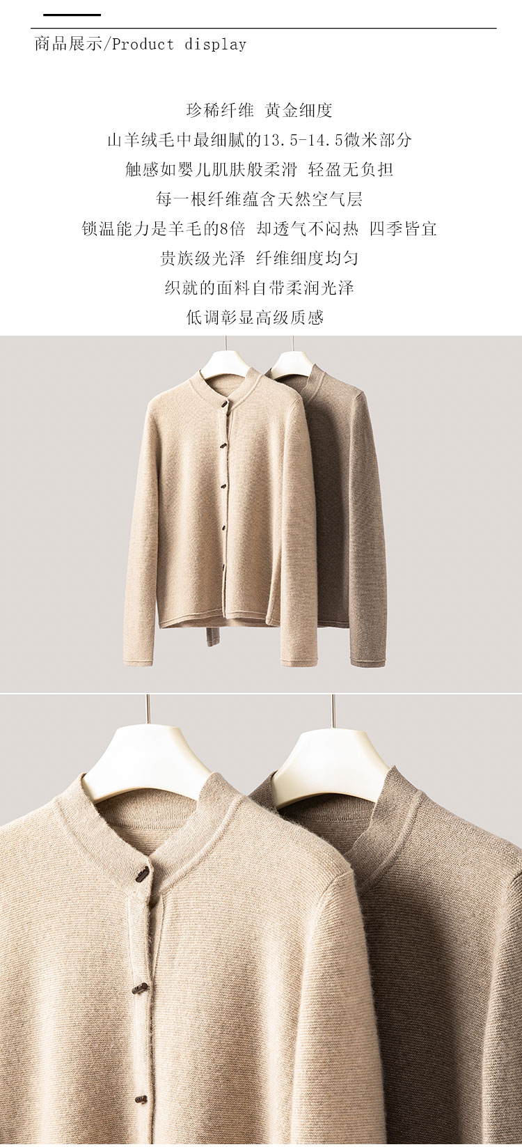 100%Baby小山羊绒~圆领中式牛骨扣羊绒开衫外套BABY250398
