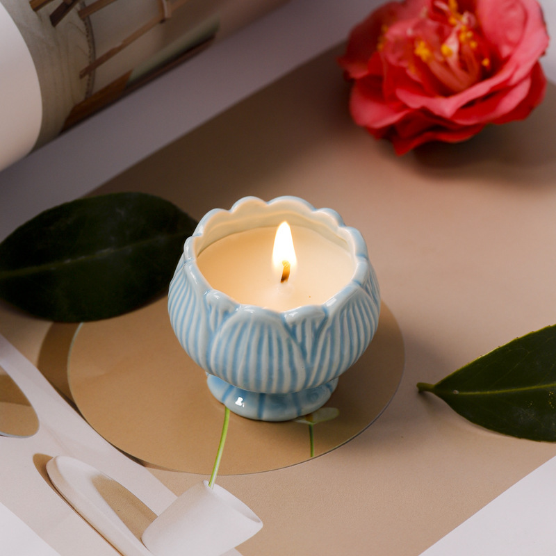 【敦煌莲花陶瓷香薰小蜡烛】手工莲花陶瓷蜡烛杯 大豆蜡香薰蜡烛家用持久留香 创意香氛