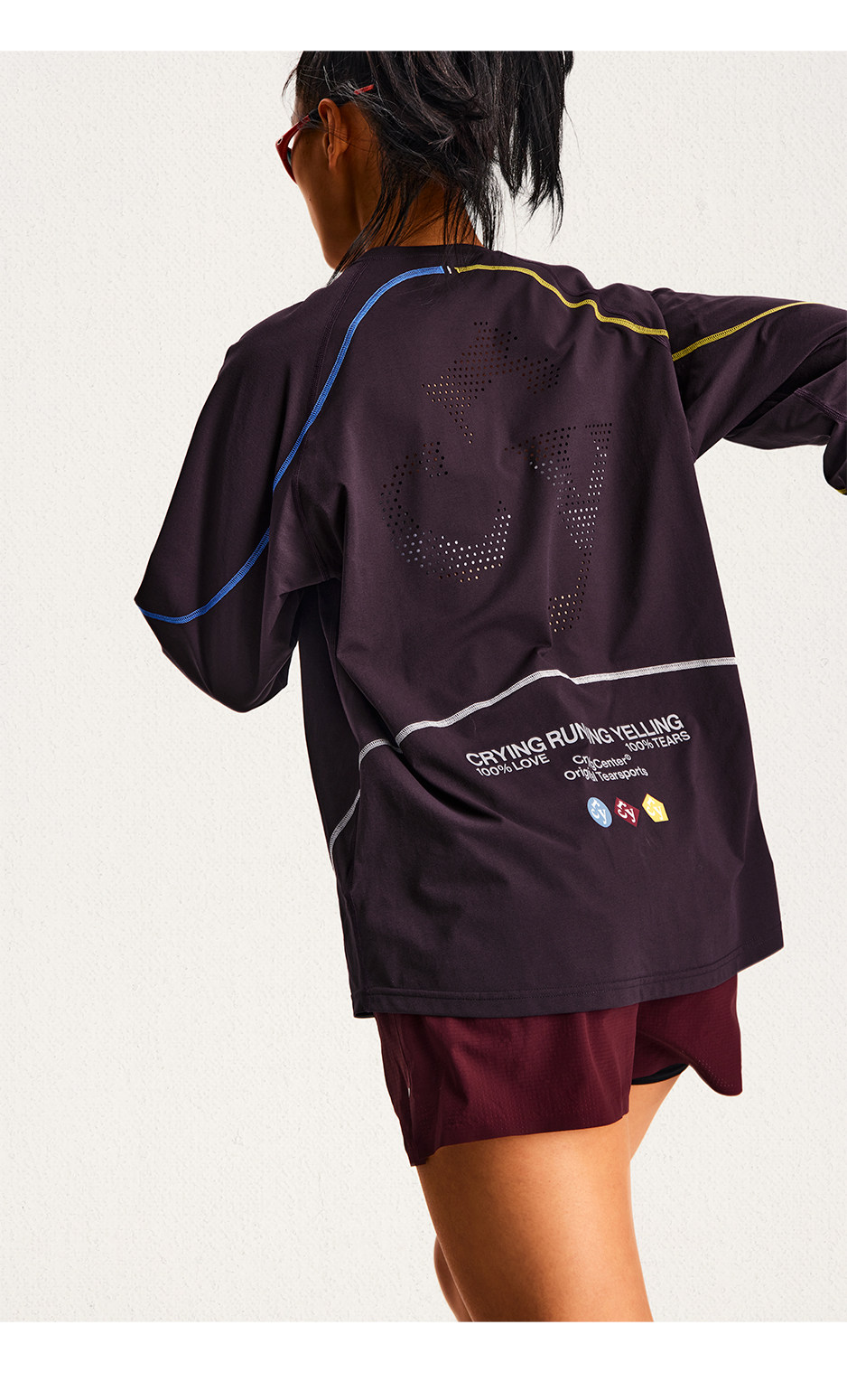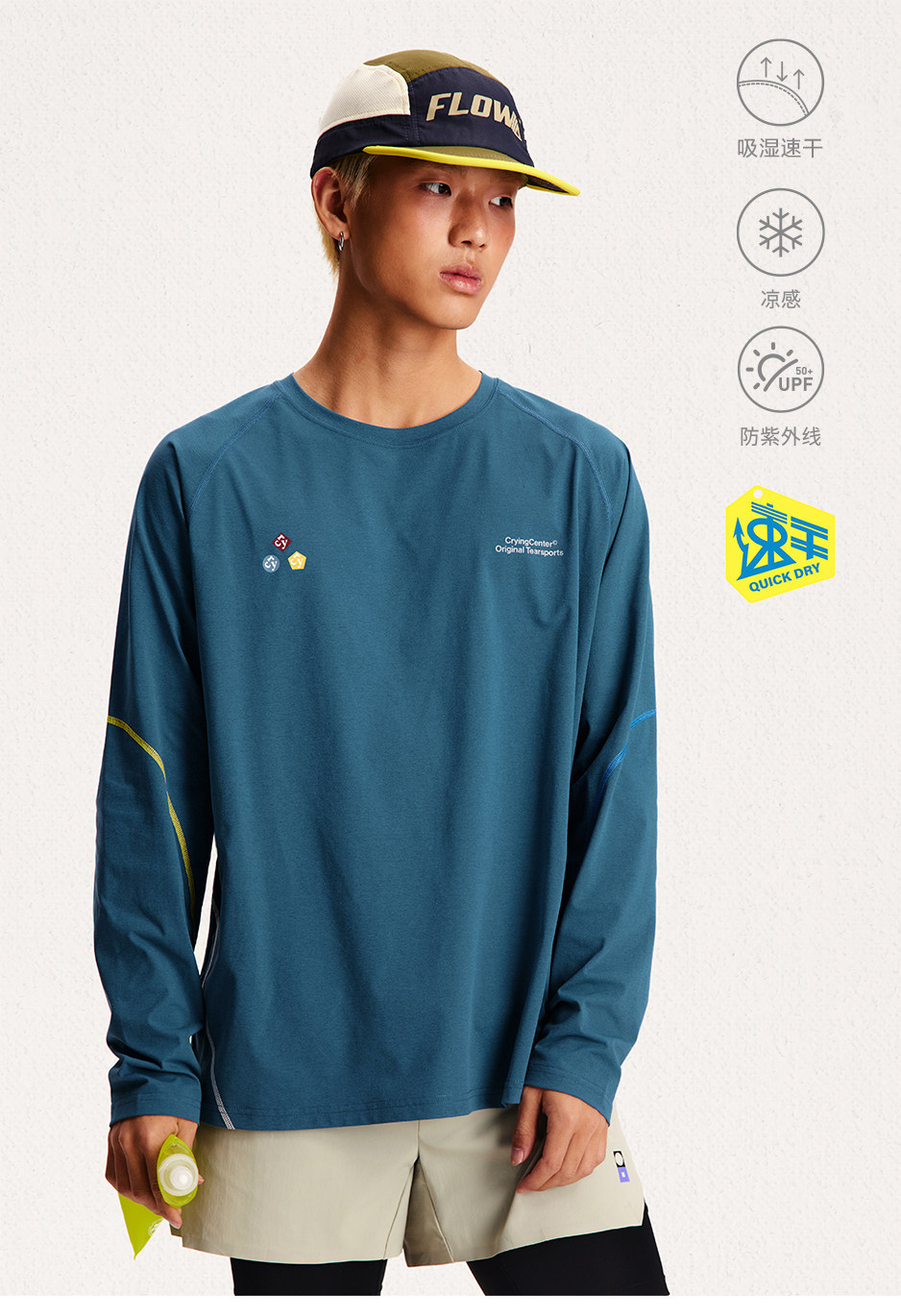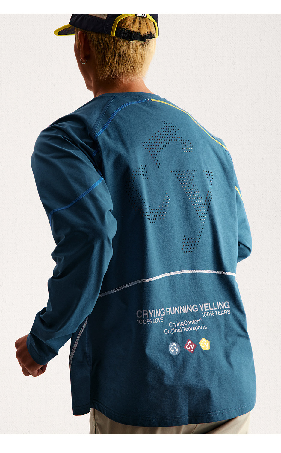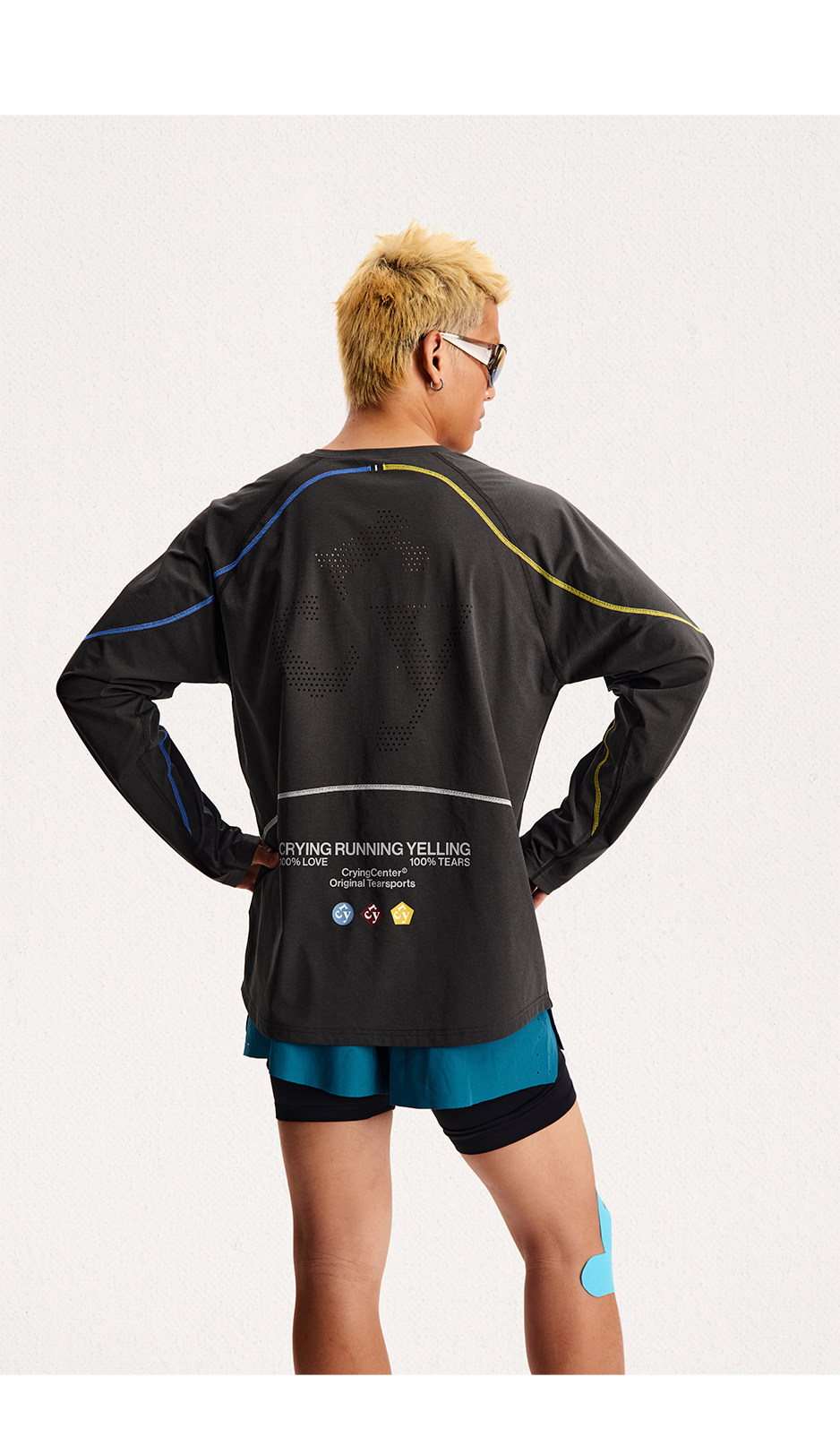 CryingCenter 冲孔图案速干凉感UPF50防晒长袖撞色弧线运动衫