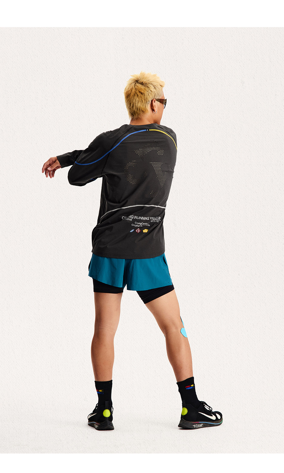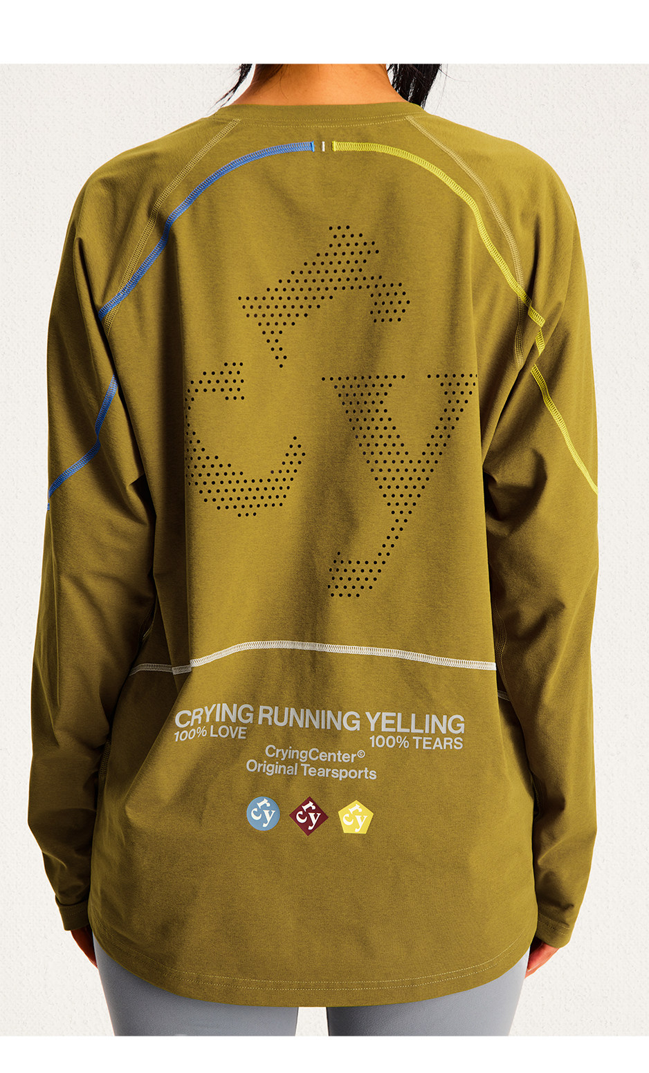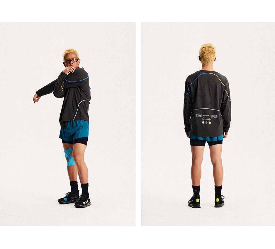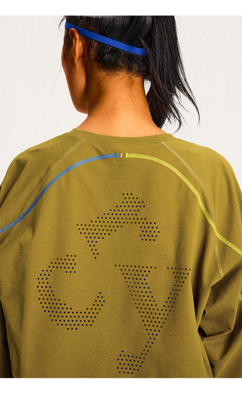 CryingCenter 冲孔图案速干凉感UPF50防晒长袖撞色弧线运动衫