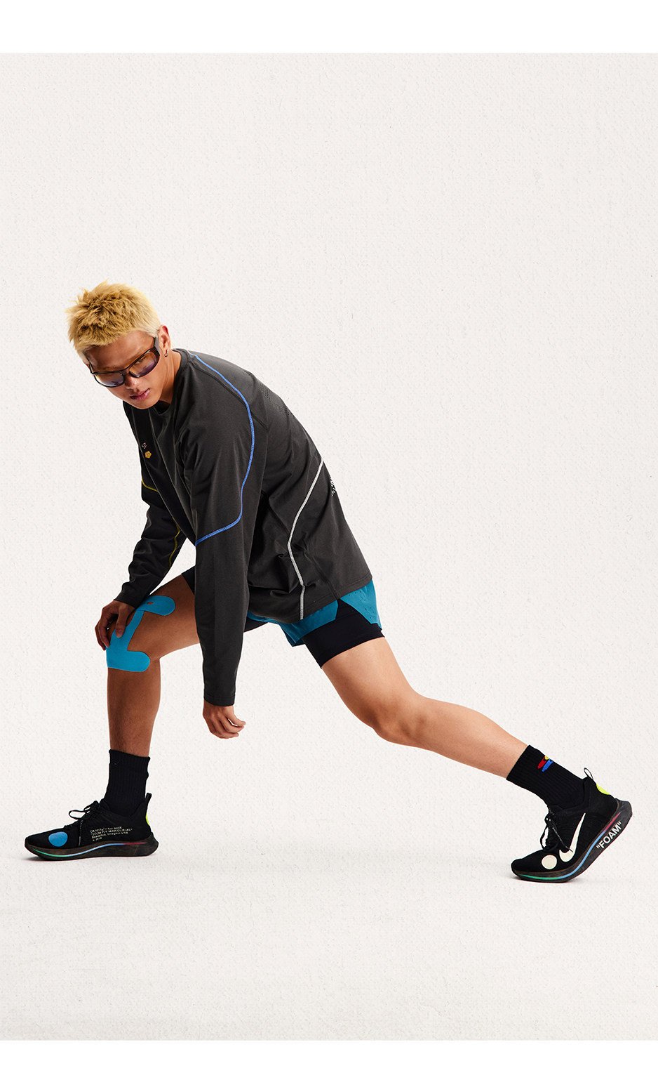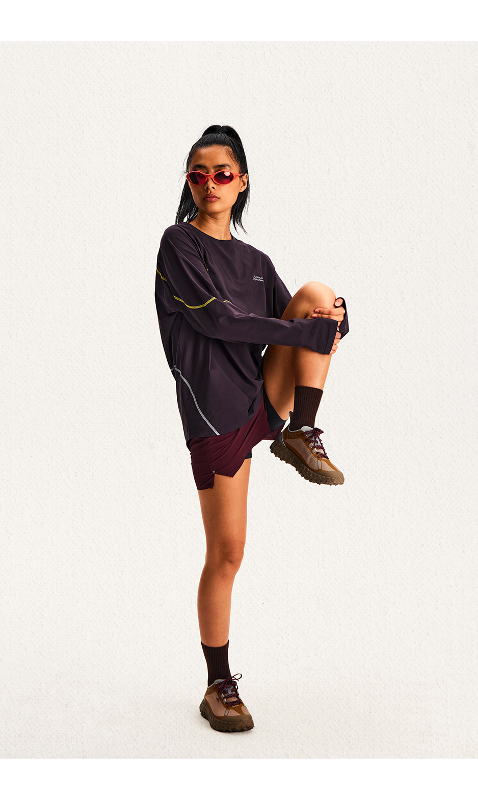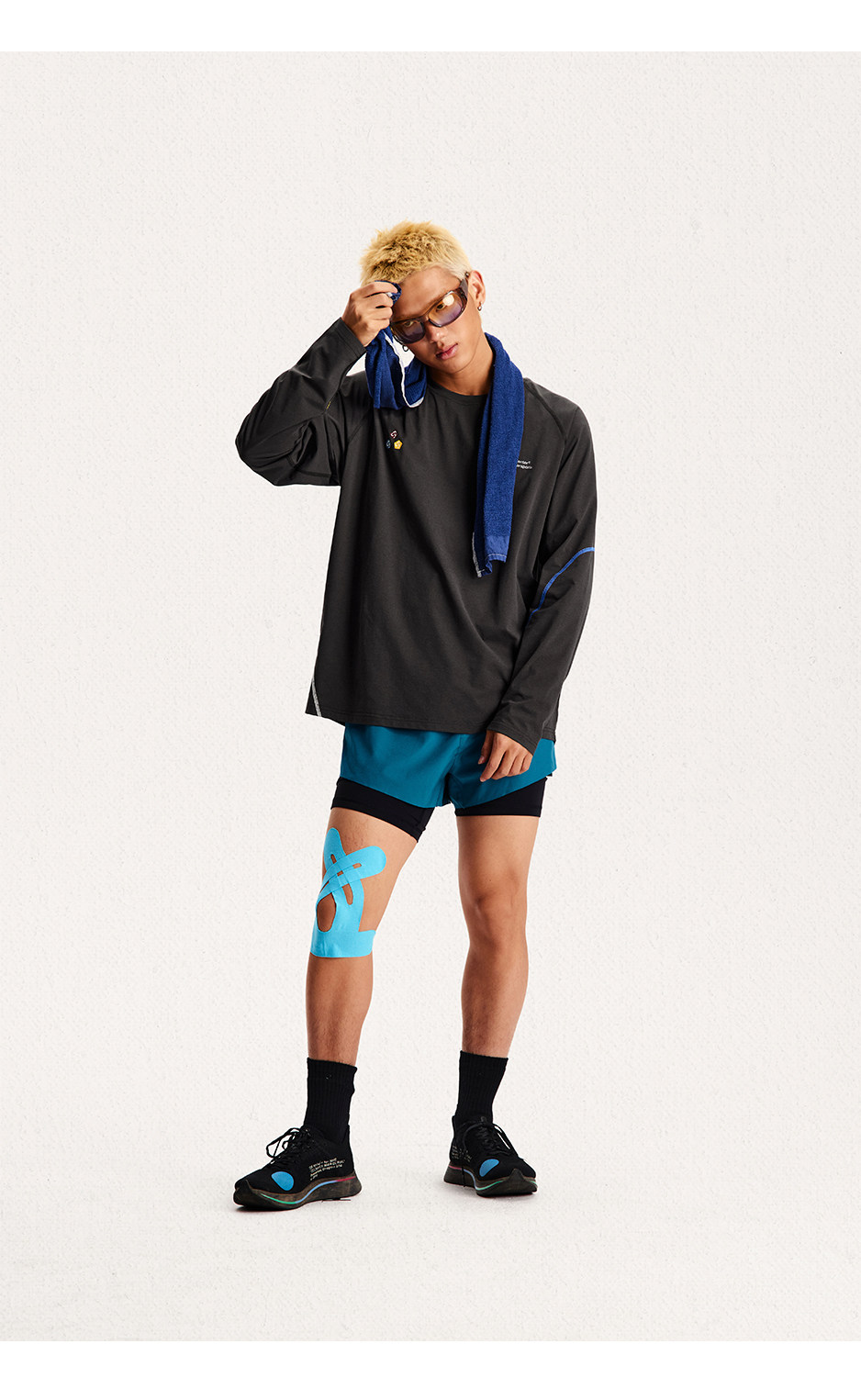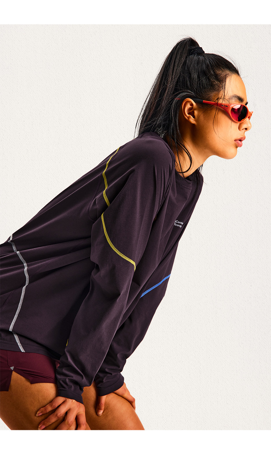 CryingCenter 冲孔图案速干凉感UPF50防晒长袖撞色弧线运动衫
