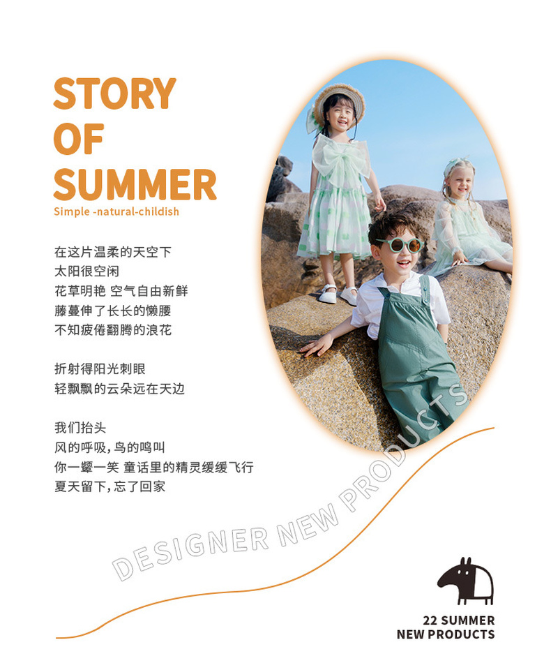 谜底童装商场同款2022夏新款A型长款裙子复古浪漫连衣裙B1BKL0329