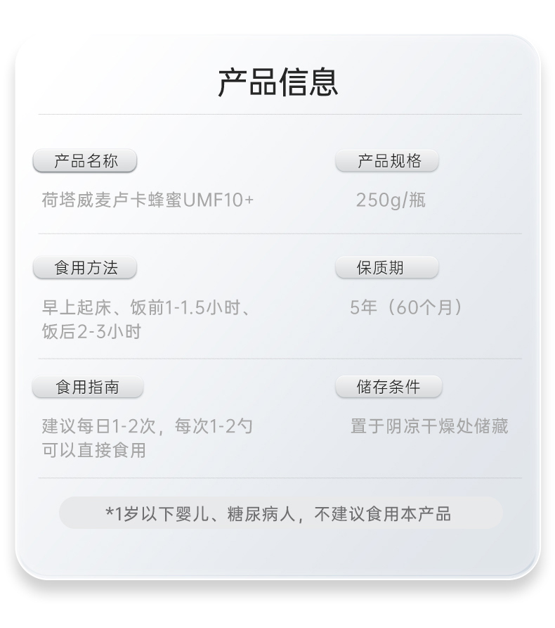 【新西兰进口】荷塔威UMF10+麦卢卡蜂蜜 * 250g/瓶 基础呵护 体验装