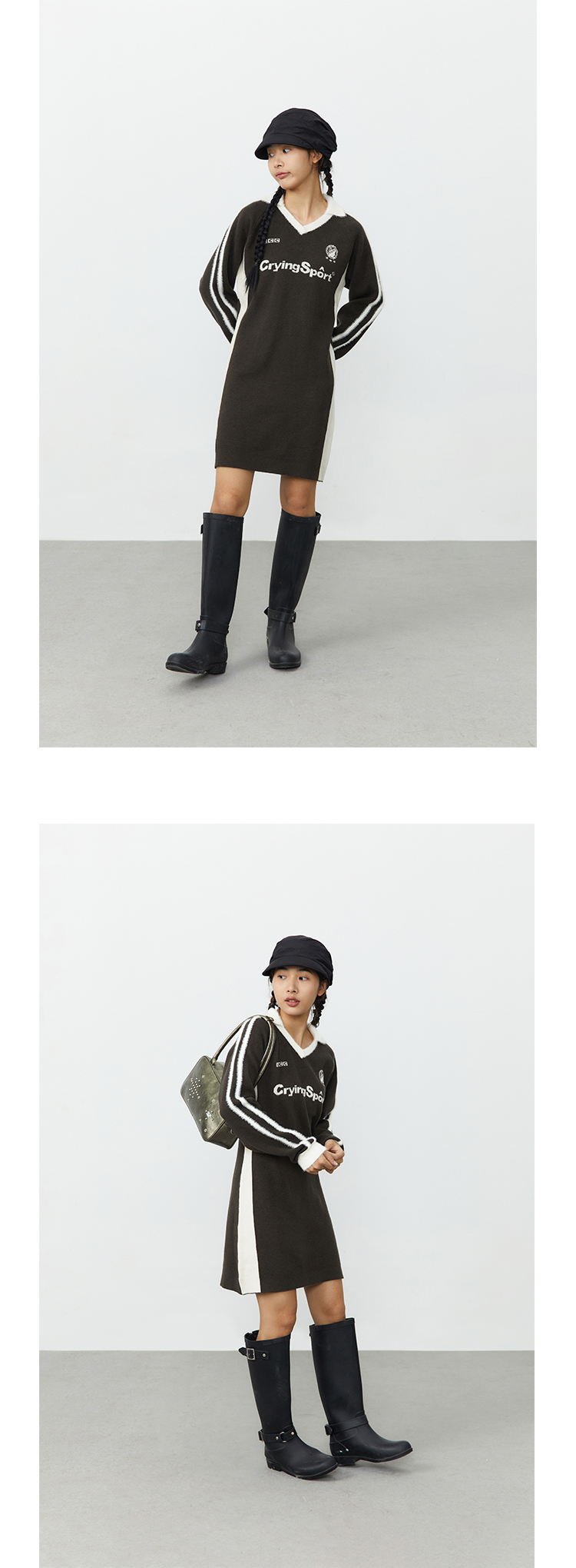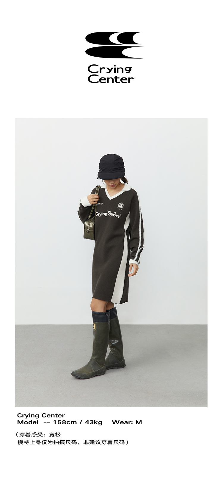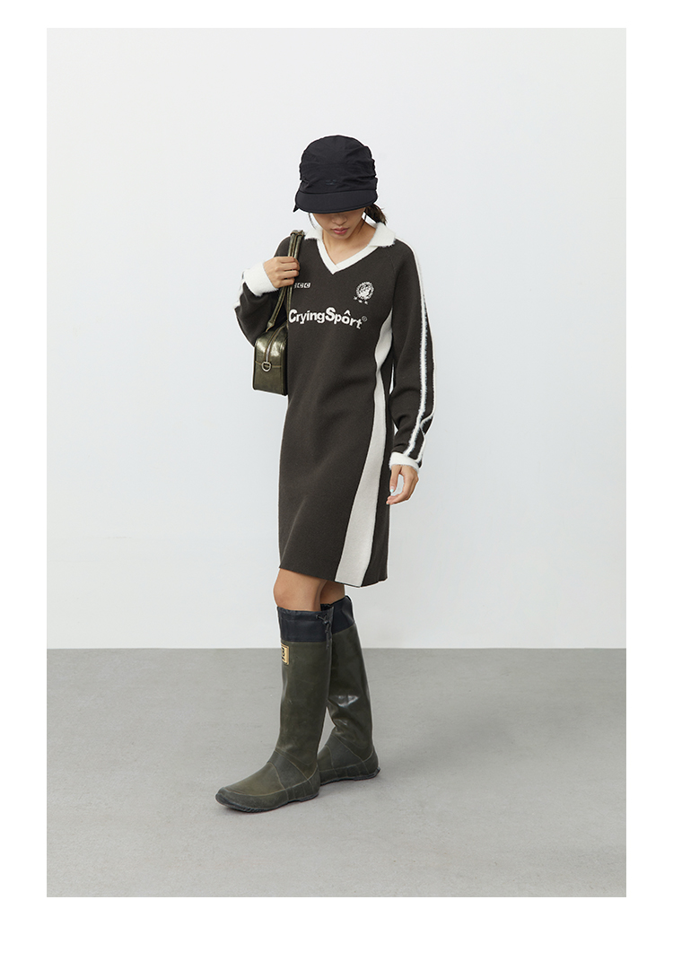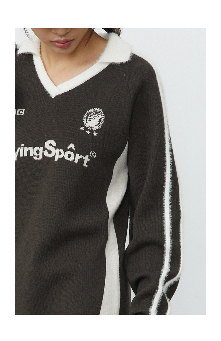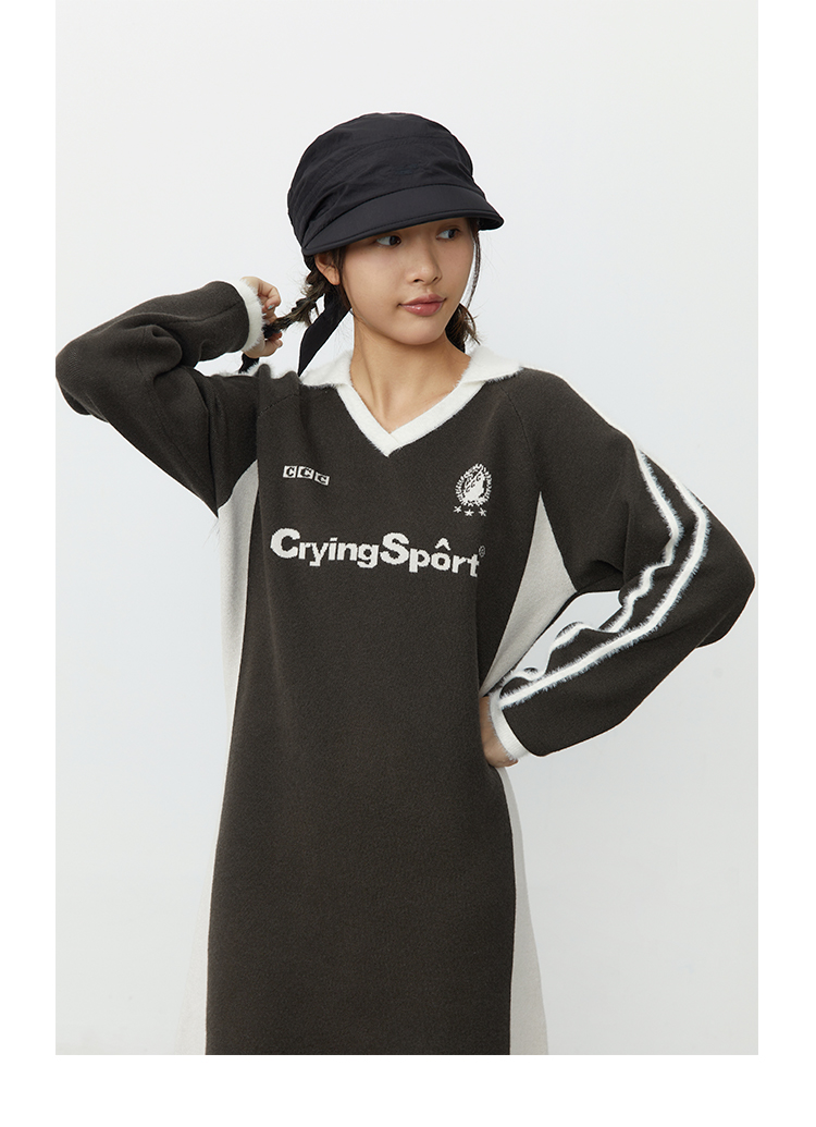 CryingCenter 灰棕色polo领运动足球毛织洋装 哭喊中心