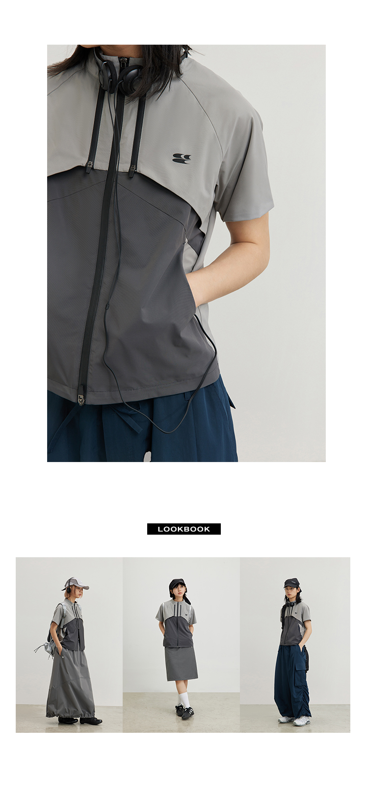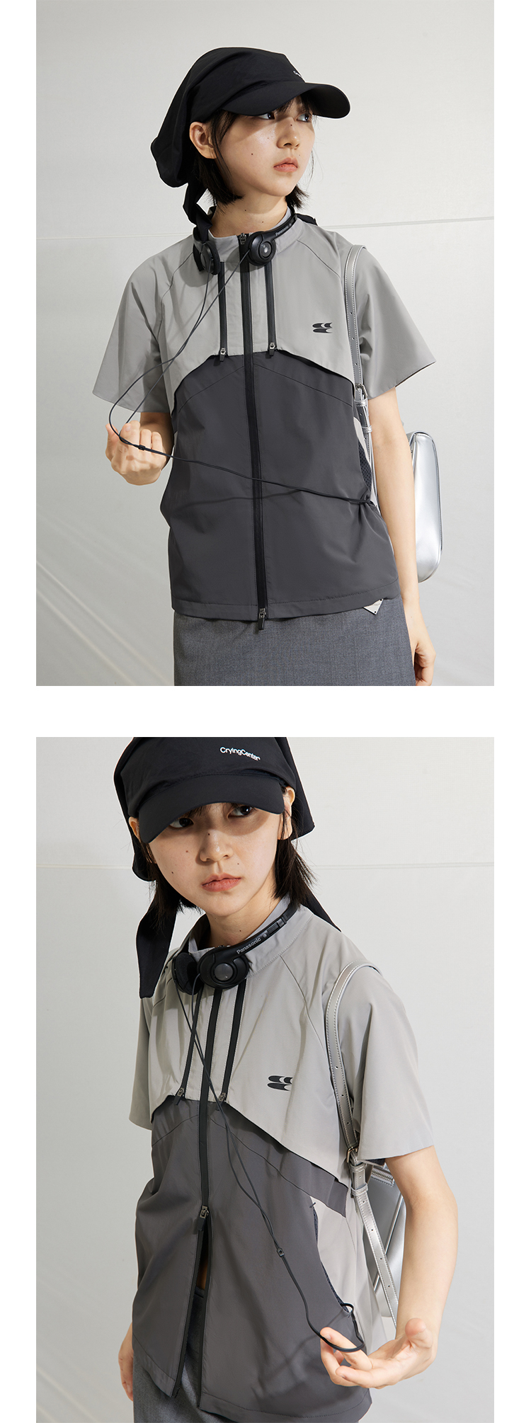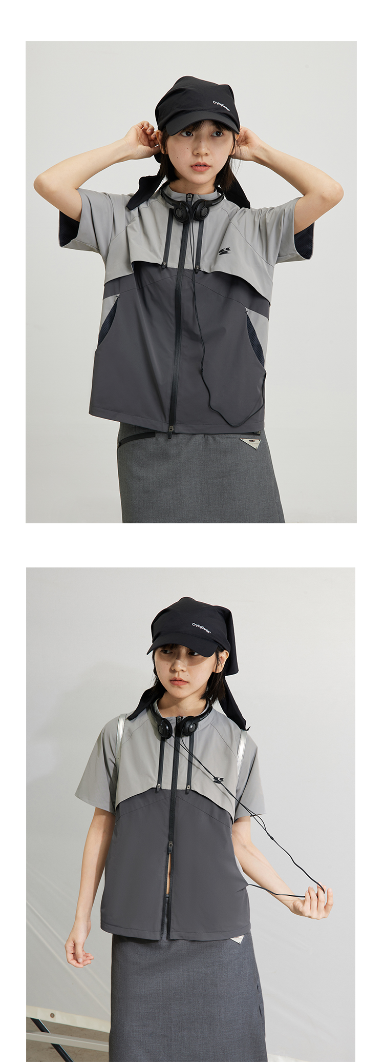 CryingCenter利落分割结构短款轻机能拼接外套上衣短袖哭喊中心