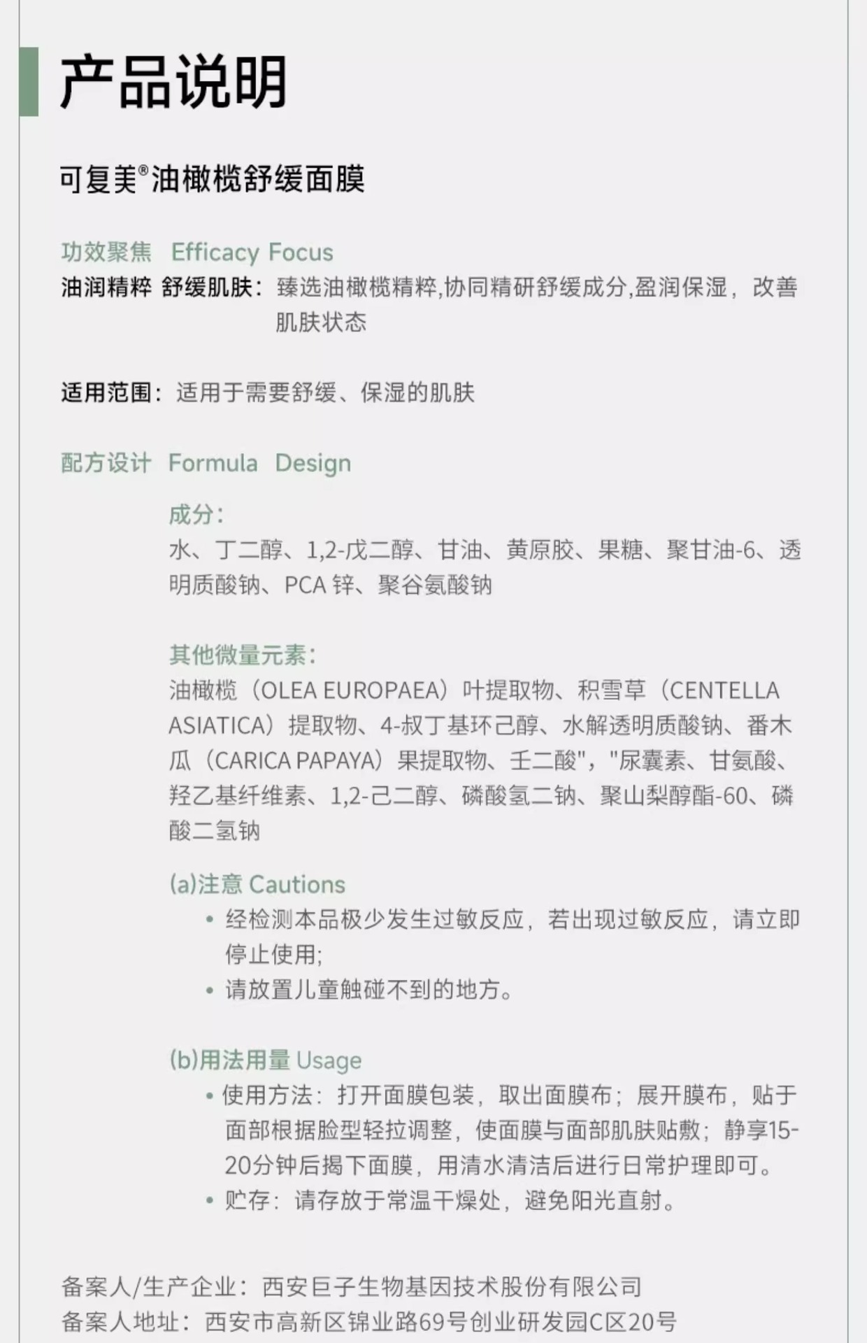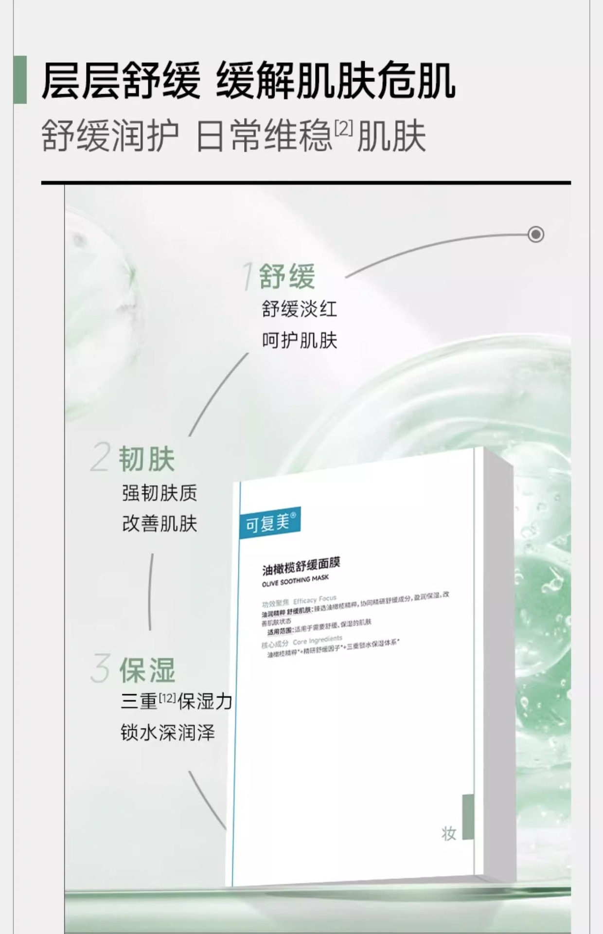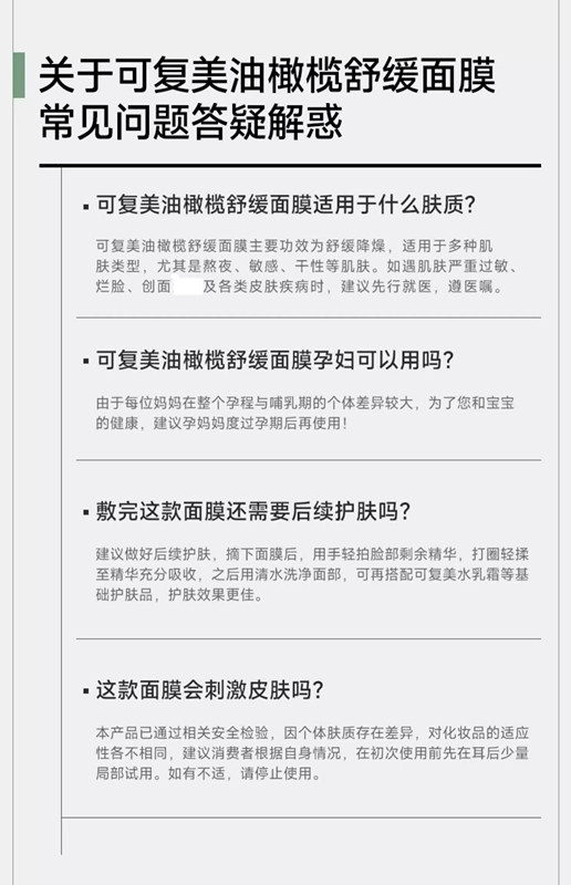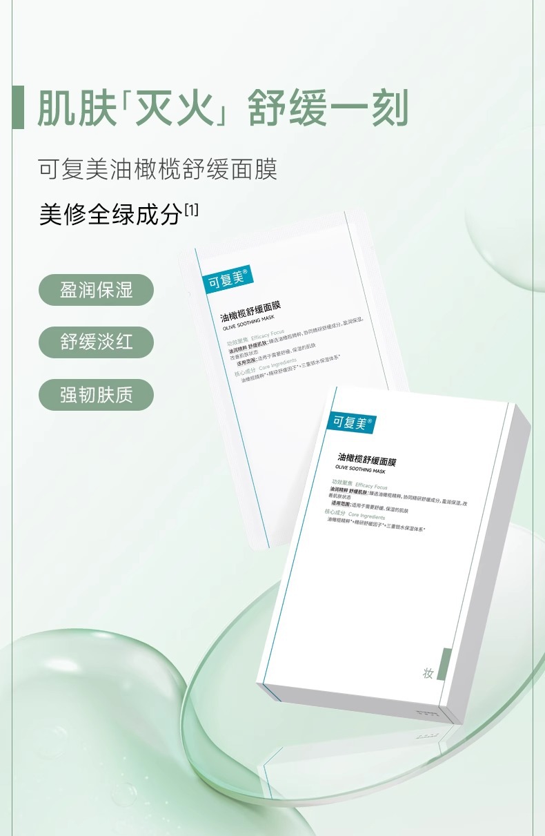可复美 油橄榄舒缓面膜补水保湿男女积雪草面膜贴片学生面膜 心选到家
