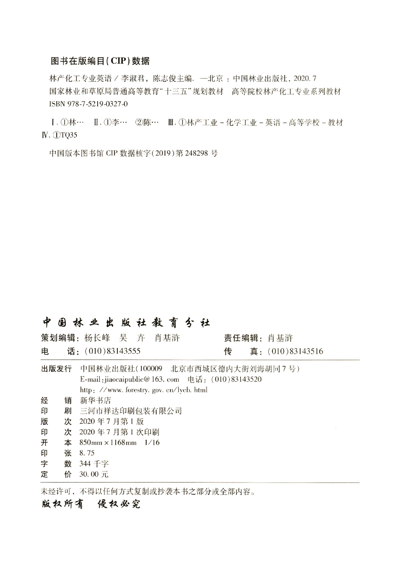 林产化工专业英语(高等院校林产化工专业系列教材) 0327 中国林业出版社