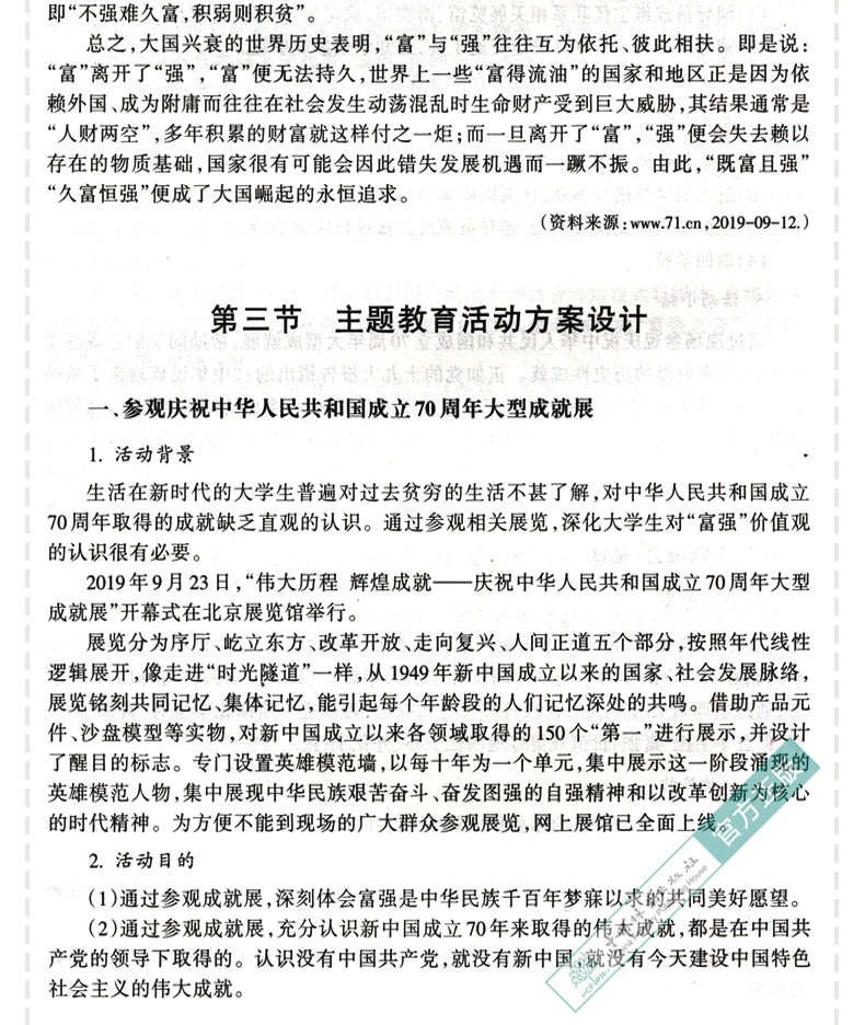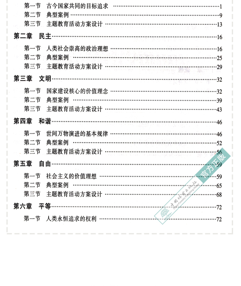 本书以社会主义核心价值观在大学生中的融入教育为切入点,结合高校教育工作实际,分章节对社会主义核心价值观的十二个主题词的基本内涵、典型案例、主题教育活动方案设计进行阐述,积极探索大学生社会主义核心价值观教育教学和培育践行的新方式、新途径,以加深学生对社会主义核心价值观每个主题词的理解,从而形成价值共识。 本书主要针对高校学生编写,力求通俗易懂,体现指导性和实践性强的特点,可作为高校公共基础课的教材和开展大学生社会主义核心价值观主题班会、主题党(团)日活动的参考资料。