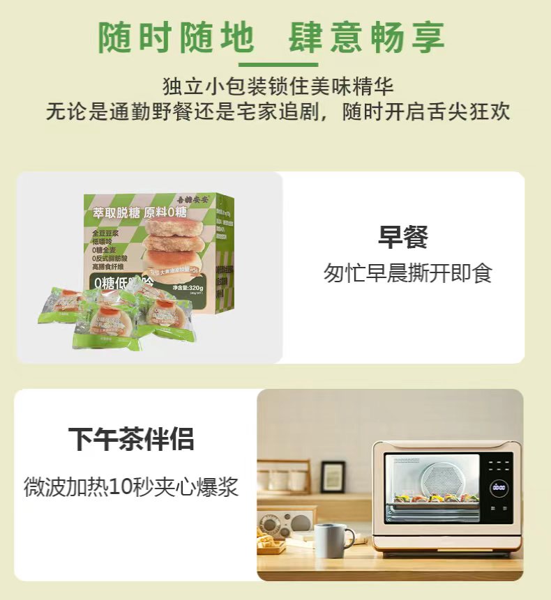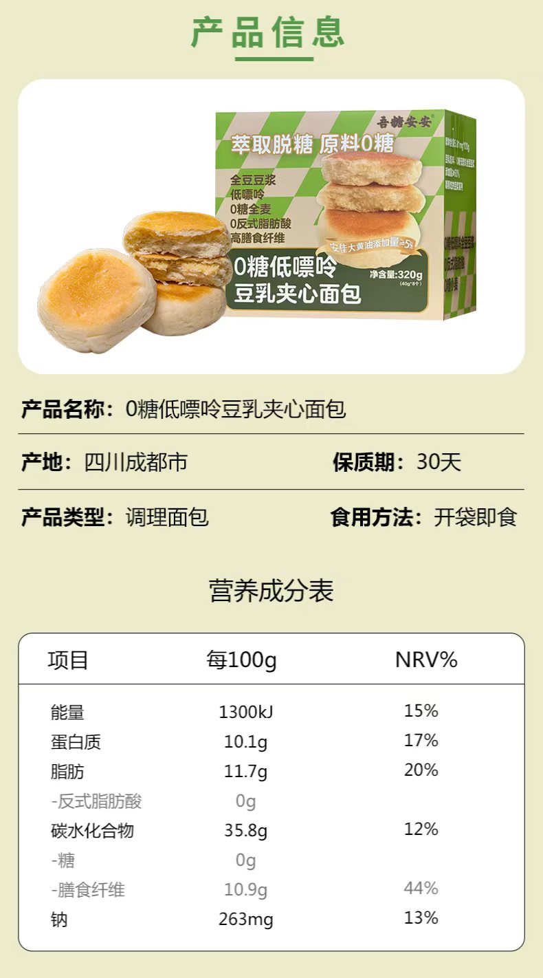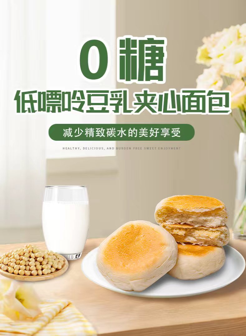 吾糖安安0糖低嘌呤豆乳夹心面包丝滑绵密点心下午茶320g/箱