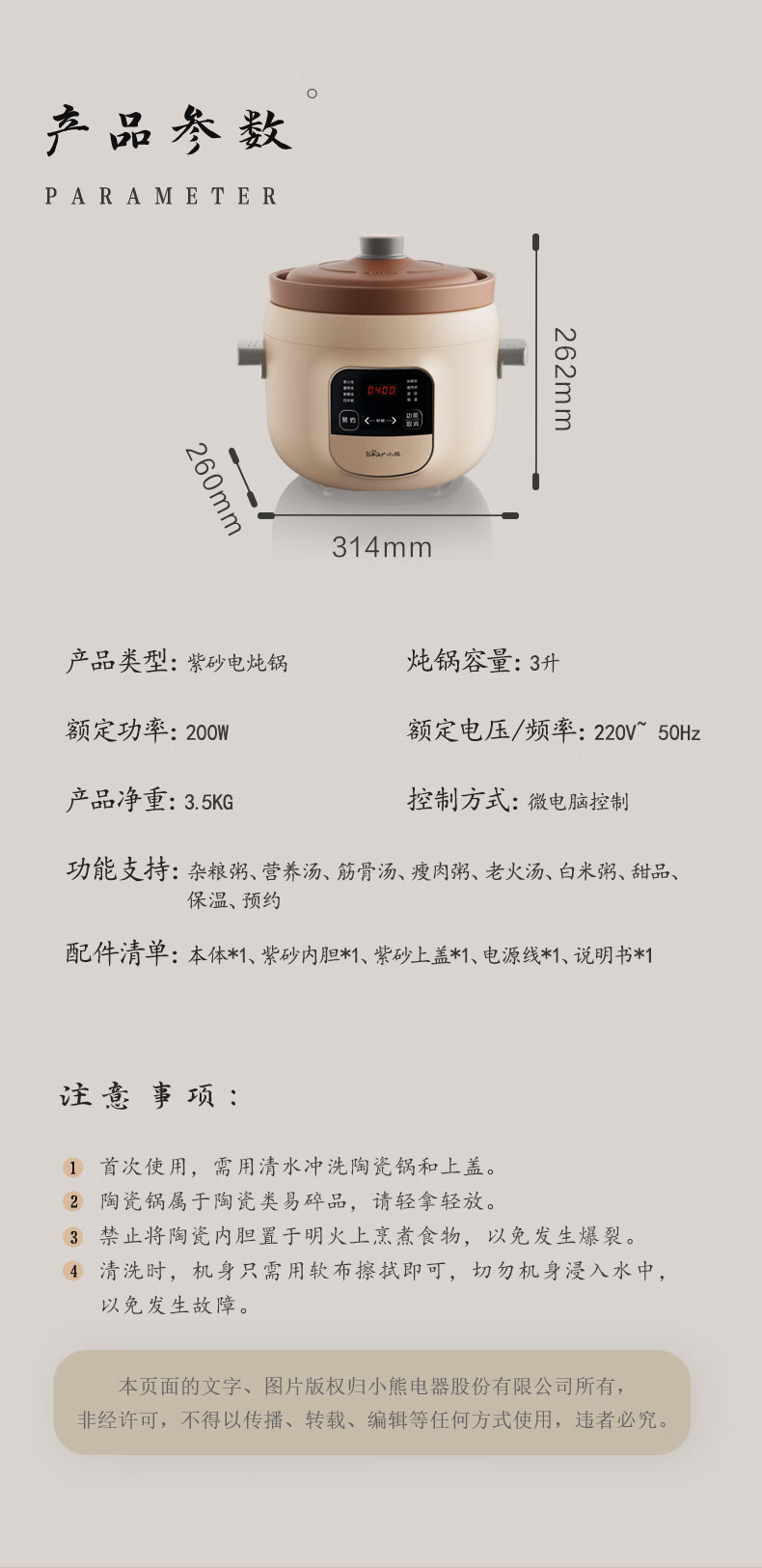 小熊(Bear)电炖锅 预约定时3L电汤锅DDG-D30L3
