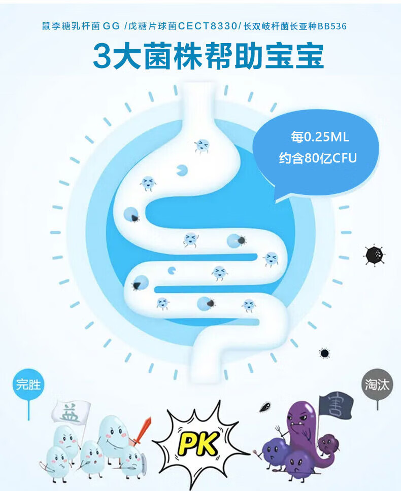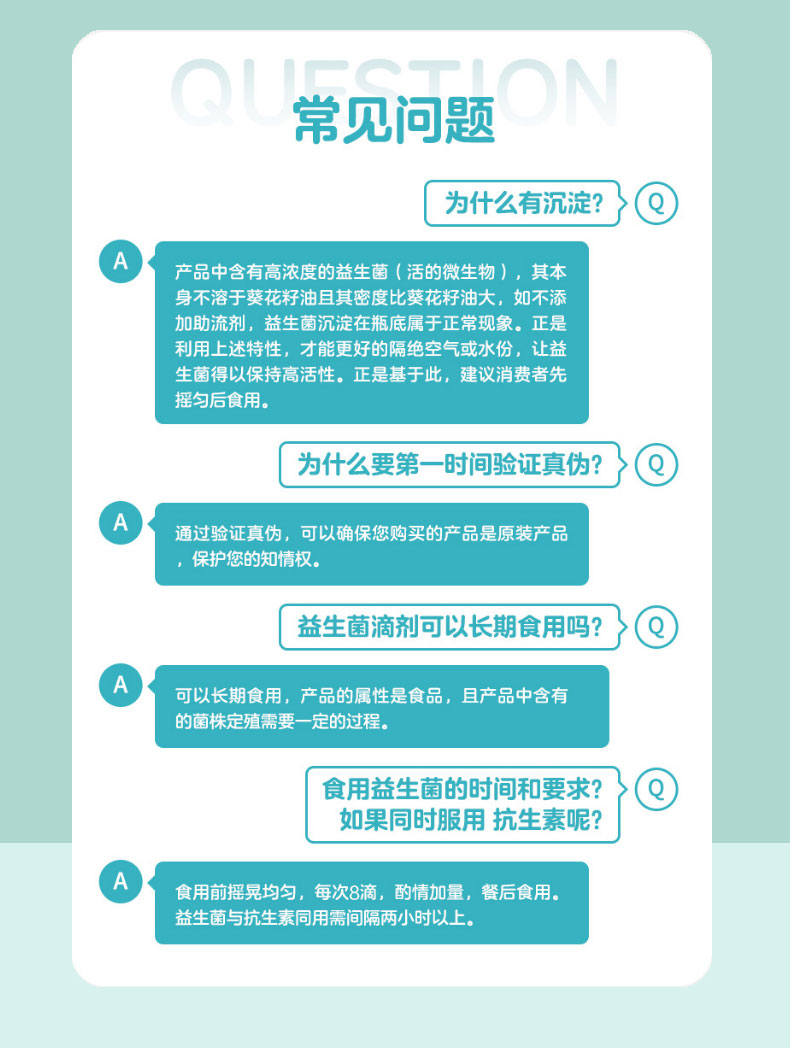 使用前一定要把瓶底白色沉淀摇匀了再滴,这样才能保证菌株摄入。