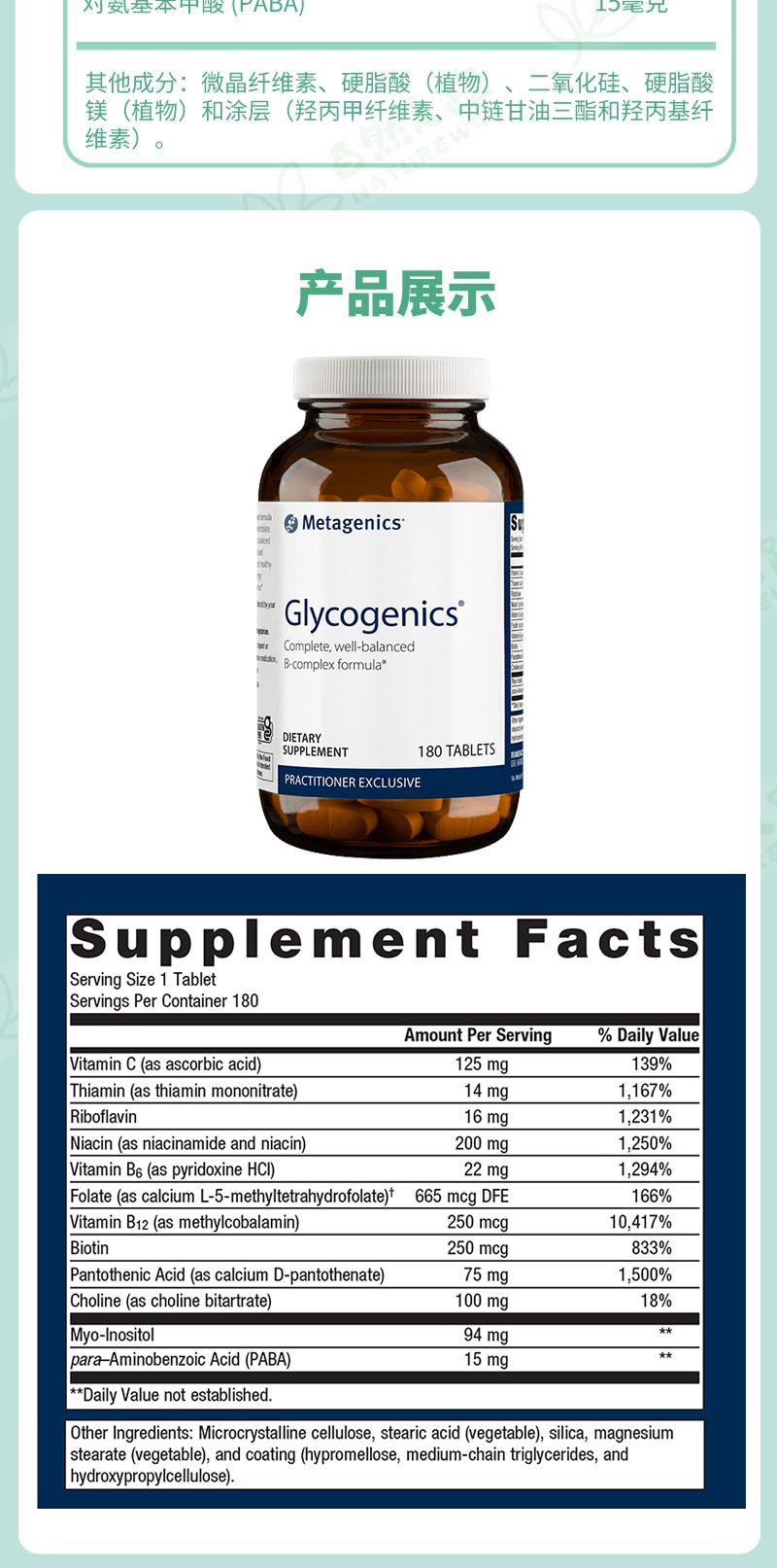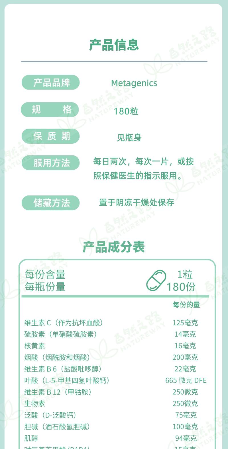 自然之路 麦特金尼斯 B族活性叶酸Glycogenics 缓解压力疲劳 180粒