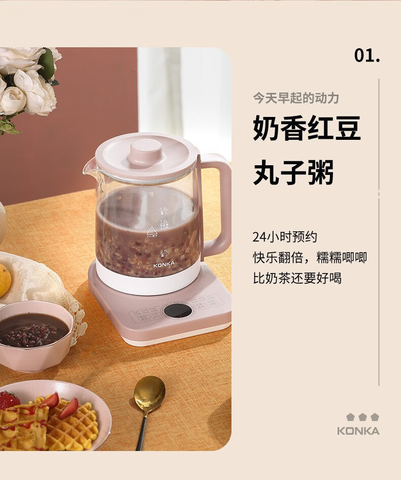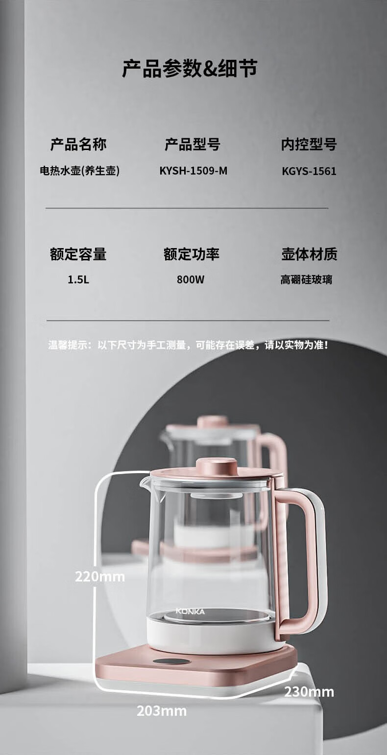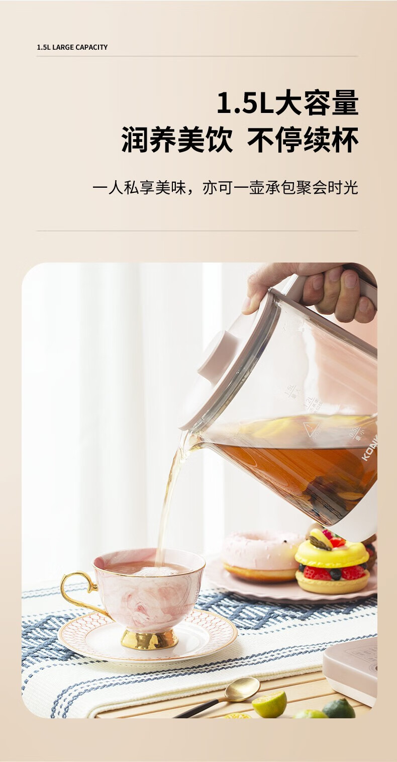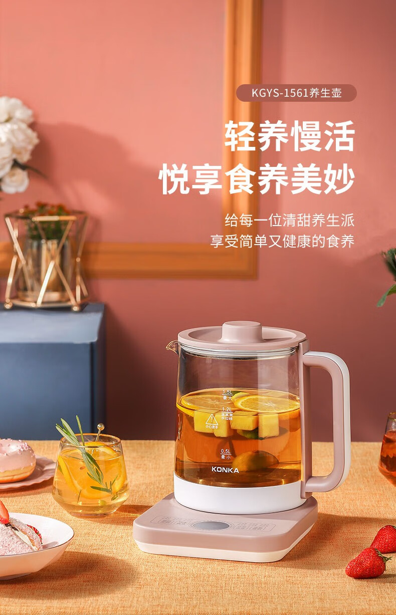 康佳(KONKA)养生壶1.5L家用多功能花茶煮茶壶电热水壶 KYSH-1509-M养生壶 1.5L