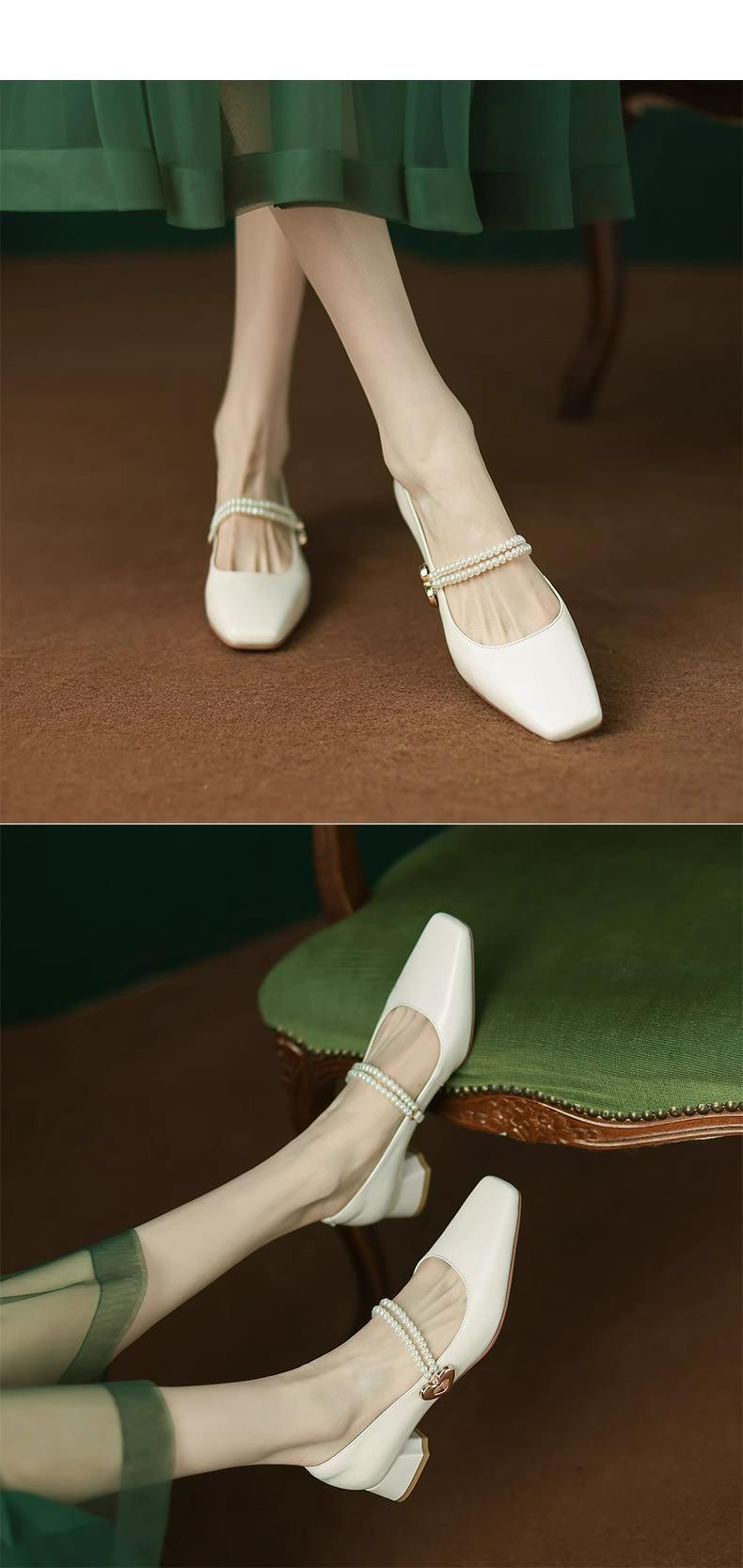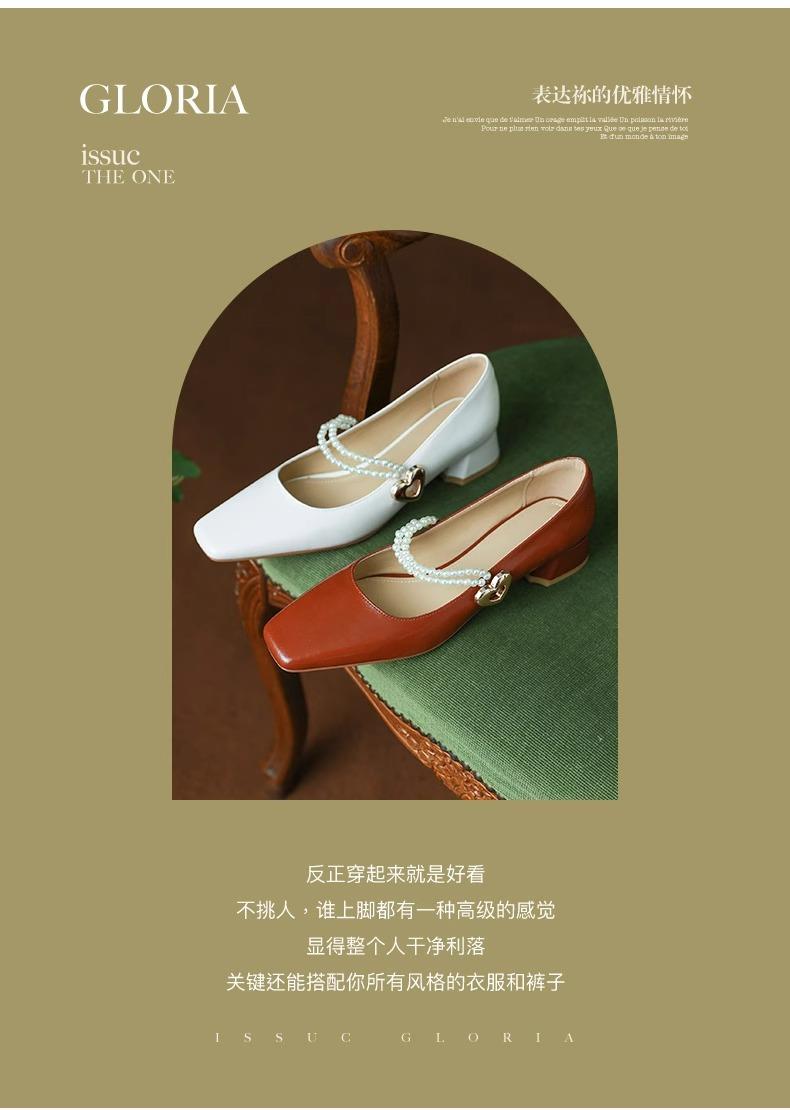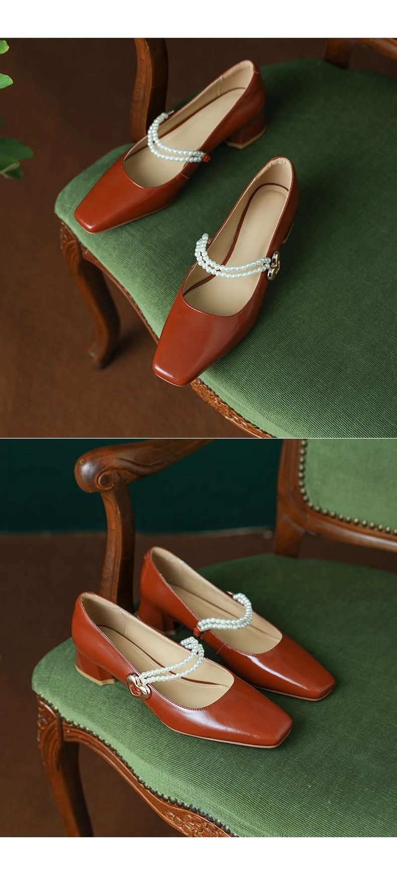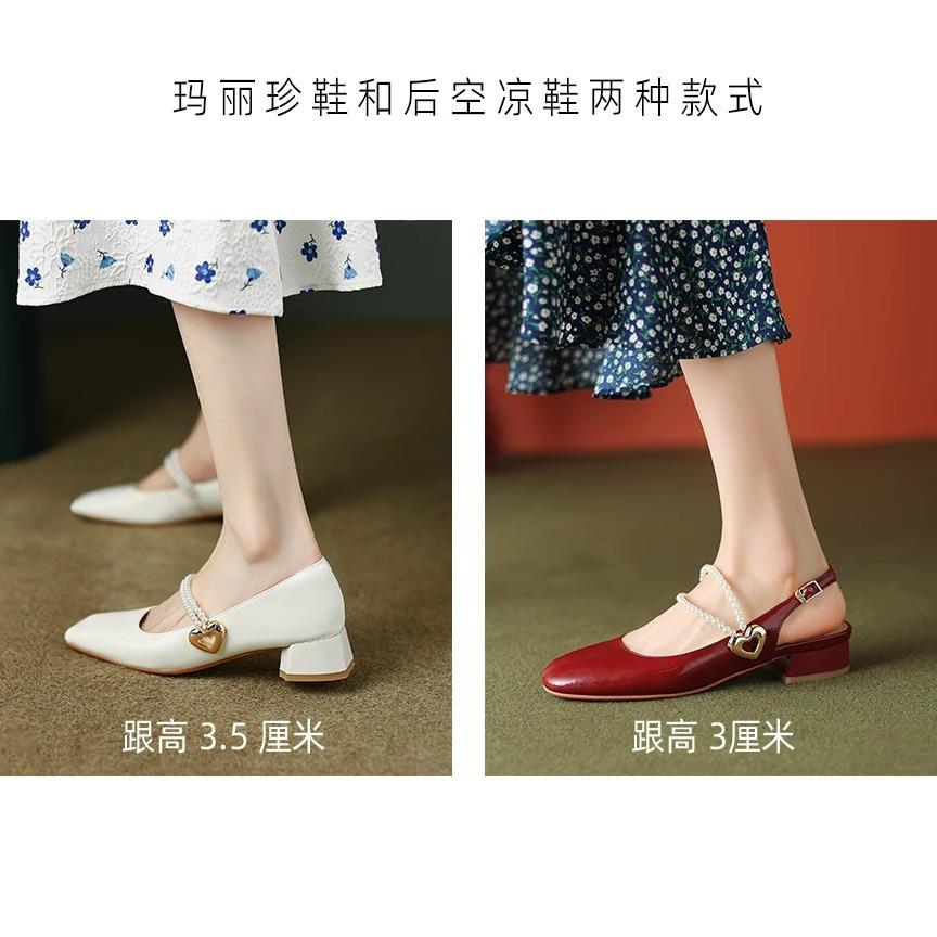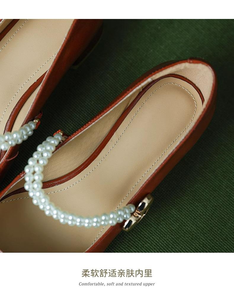 【新中式牛皮玛丽珍鞋】女高跟粗跟珍珠伴娘法式旗袍国风中跟单鞋婚鞋