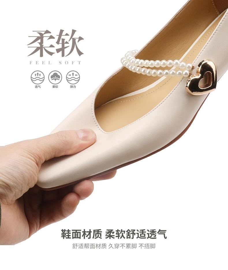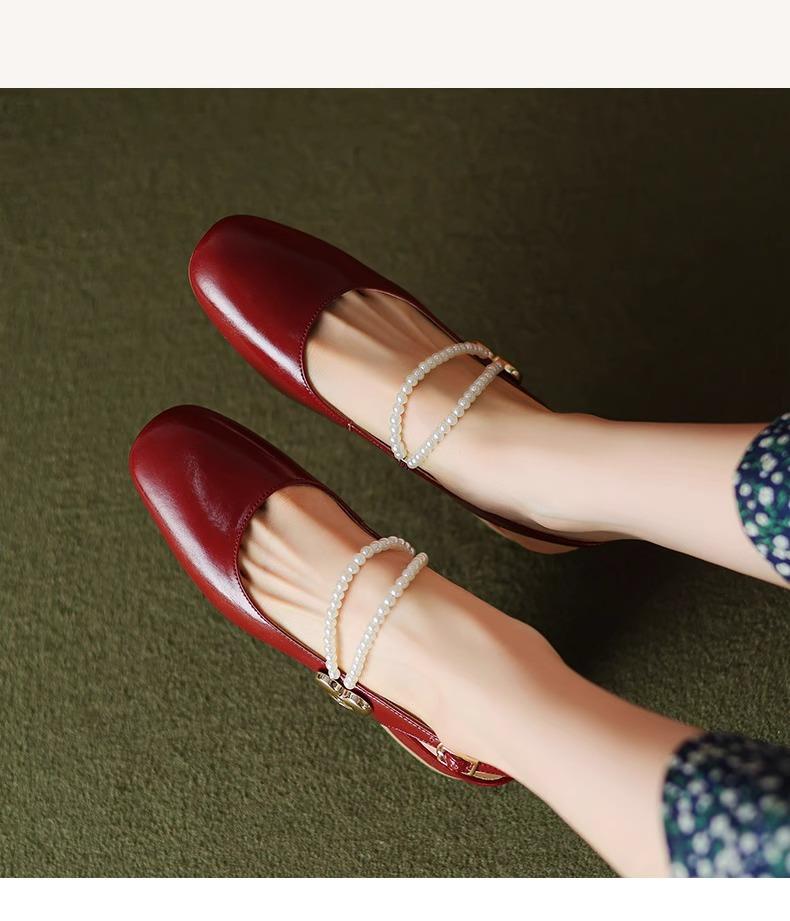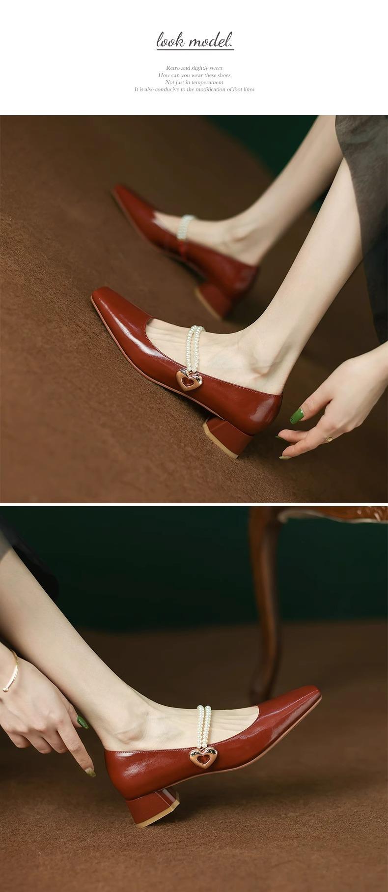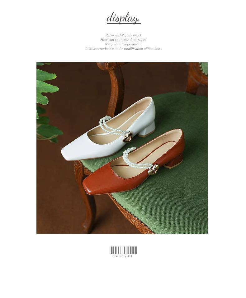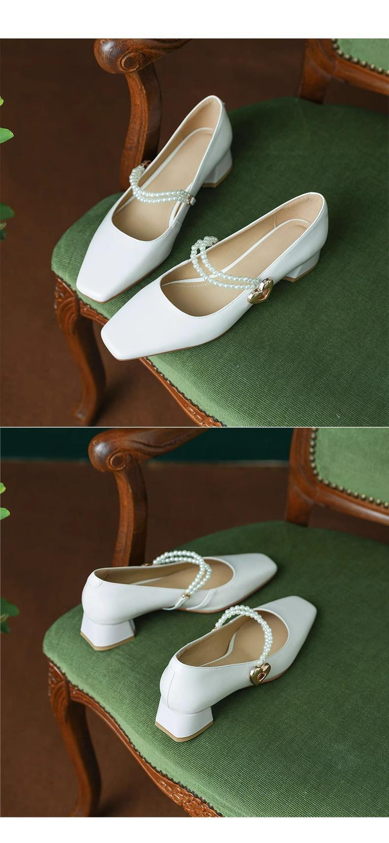 【新中式牛皮玛丽珍鞋】女高跟粗跟珍珠伴娘法式旗袍国风中跟单鞋婚鞋