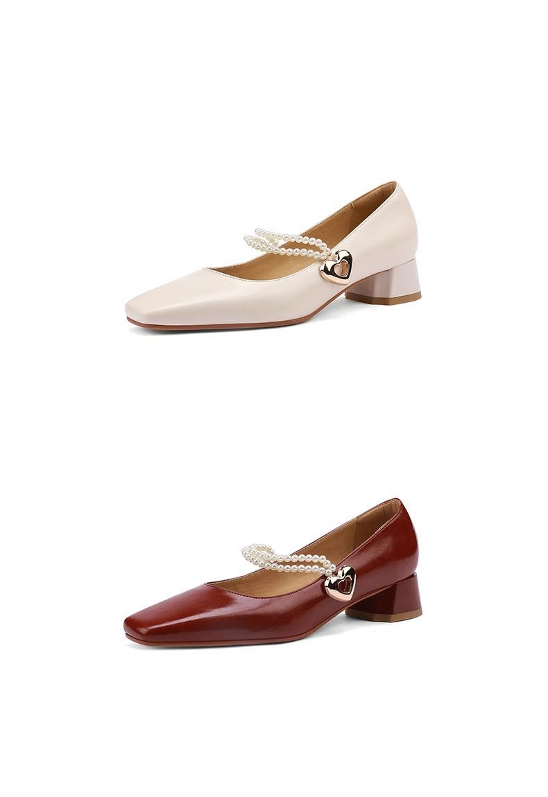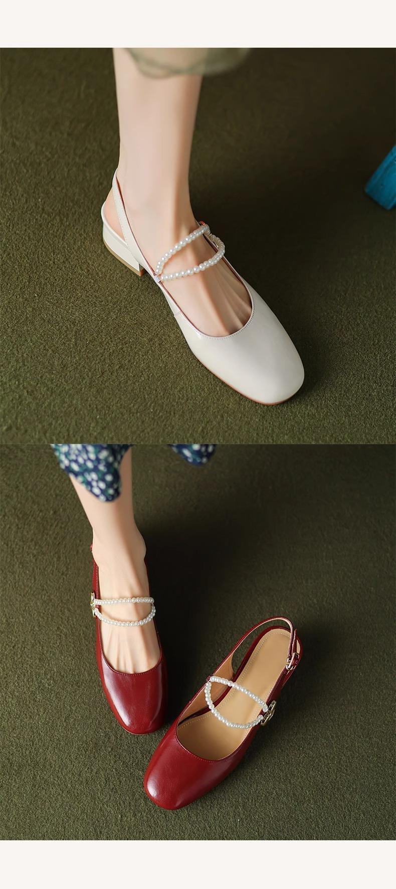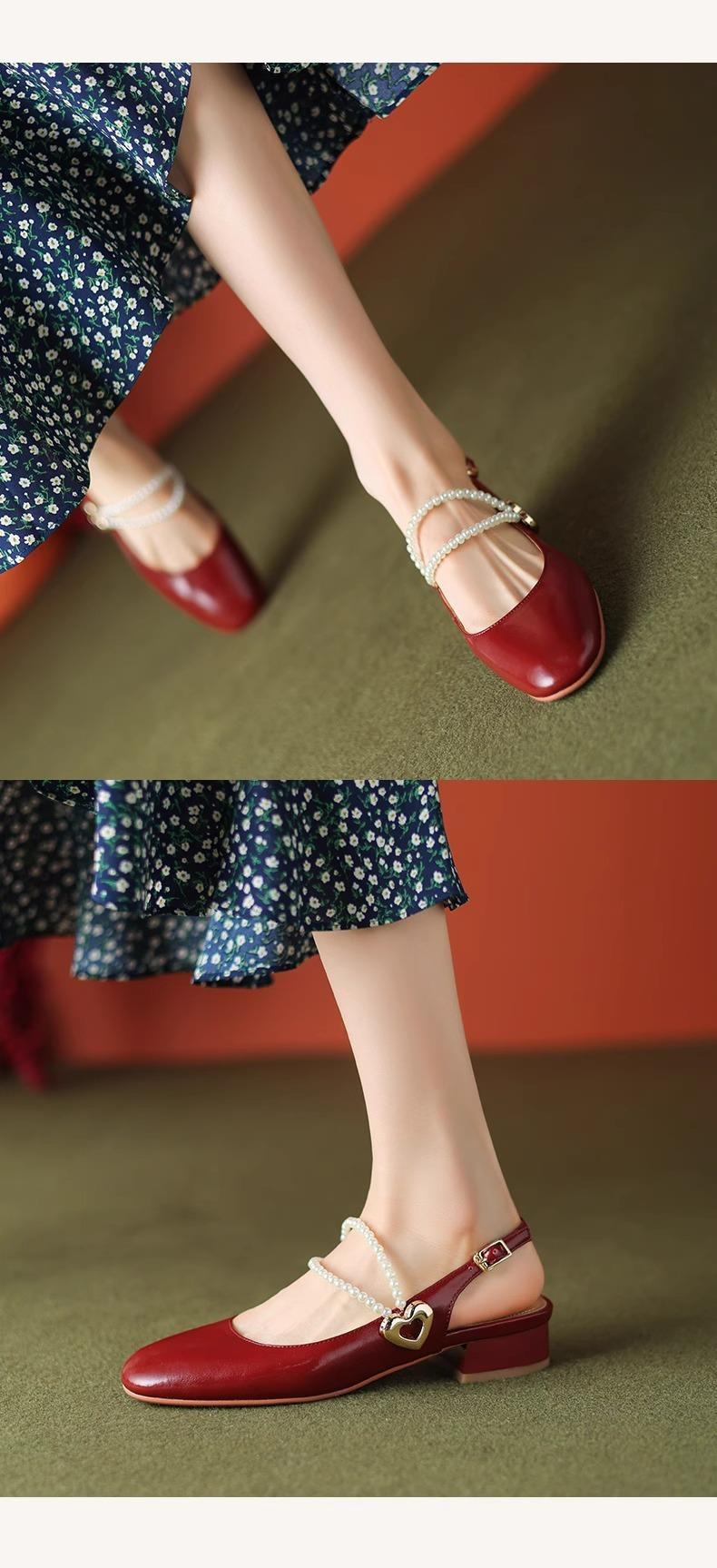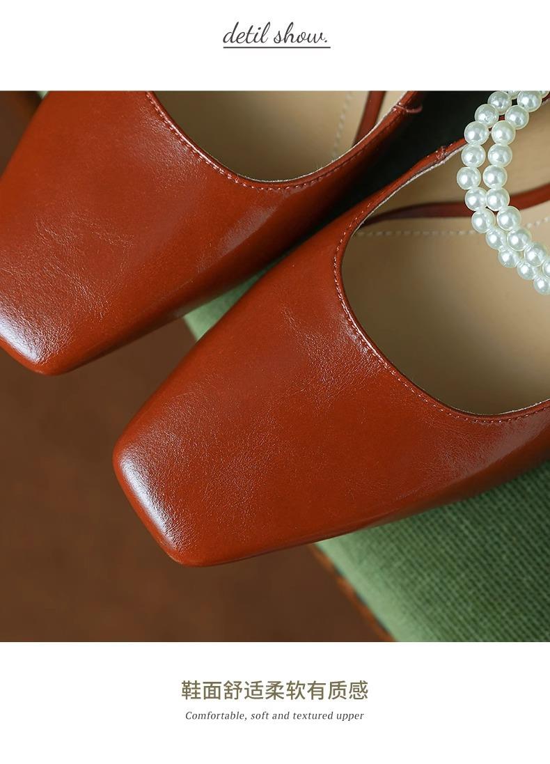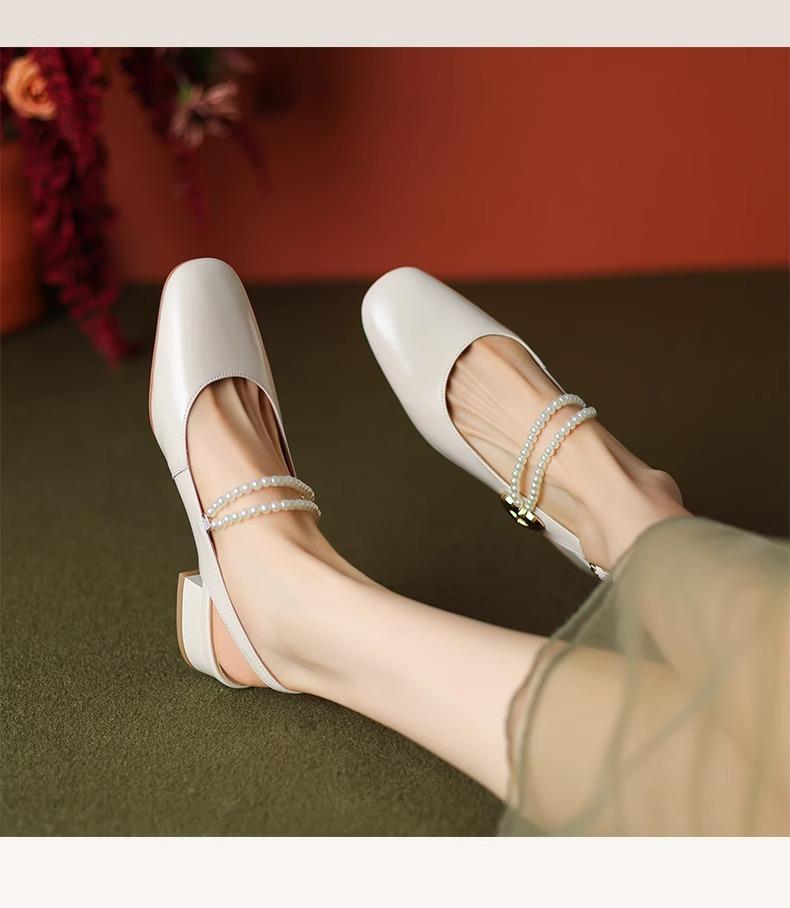 【新中式牛皮玛丽珍鞋】女高跟粗跟珍珠伴娘法式旗袍国风中跟单鞋婚鞋