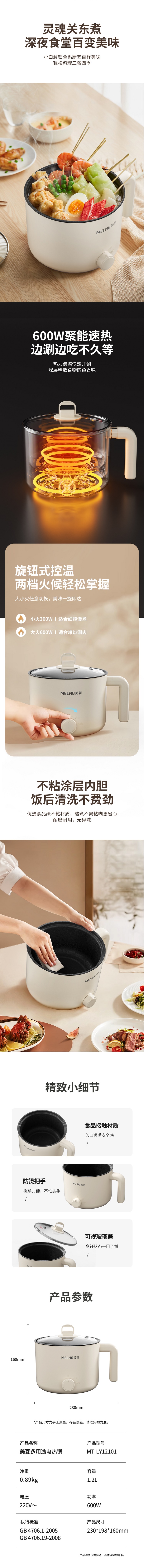 美菱 多用途电热锅电煮锅 MT-LY12101