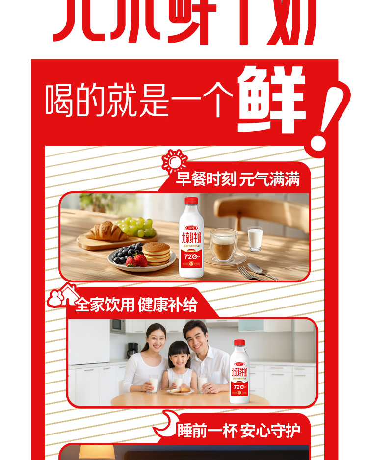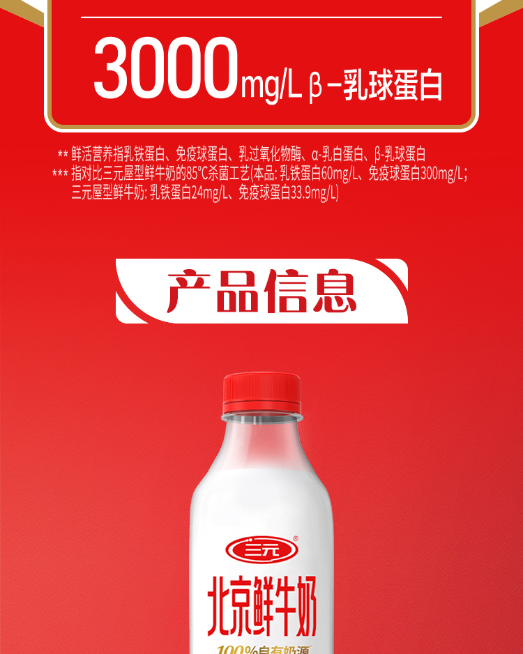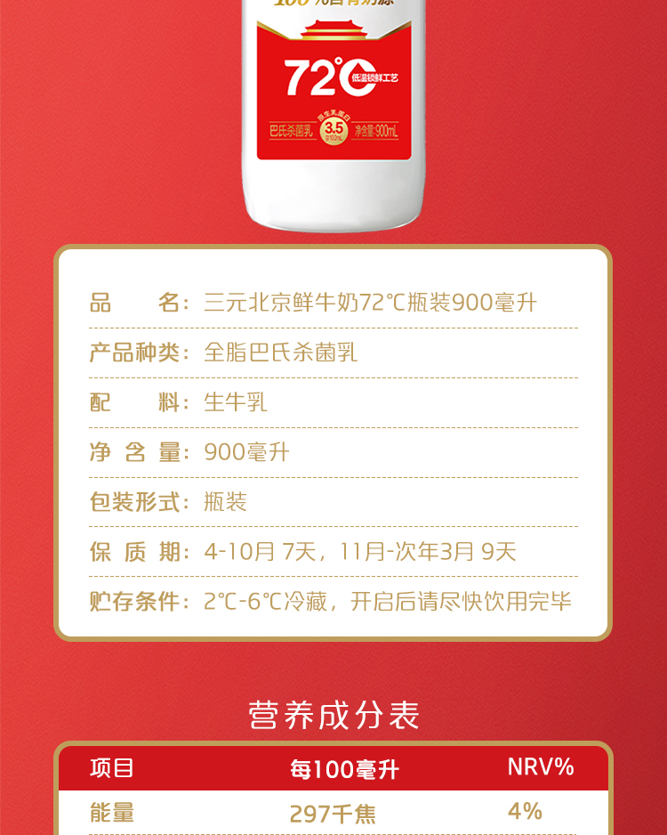 【自提-低温】三元北京鲜牛奶72℃瓶装900ml*6