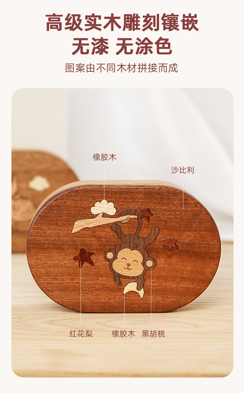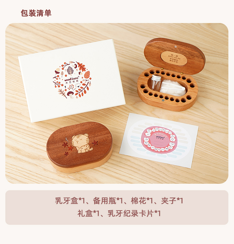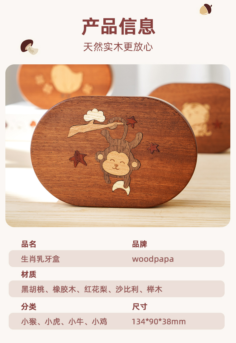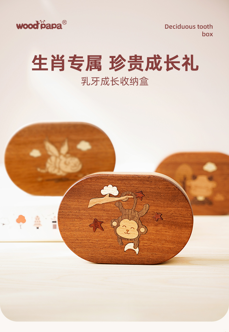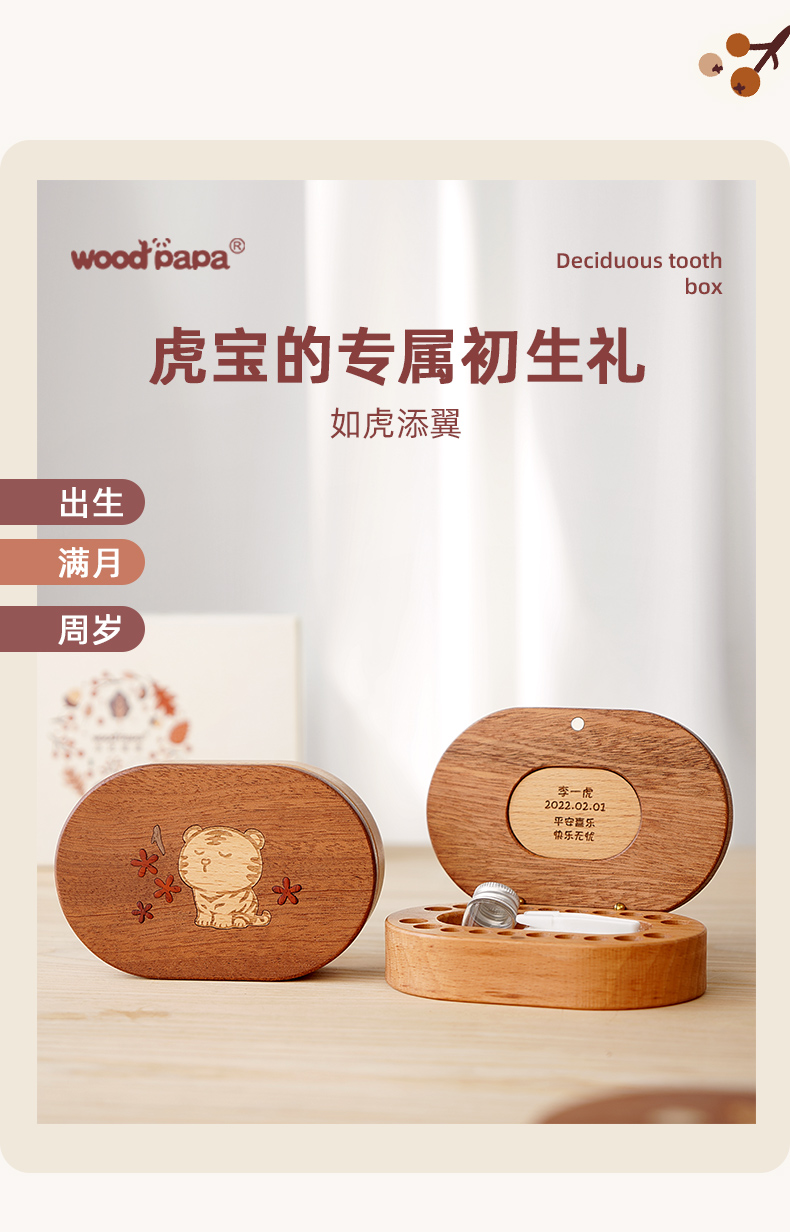 woodpapa木艺爸爸胎毛纪念品乳牙收纳盒男孩女孩宝宝胎发脐带收藏保存盒