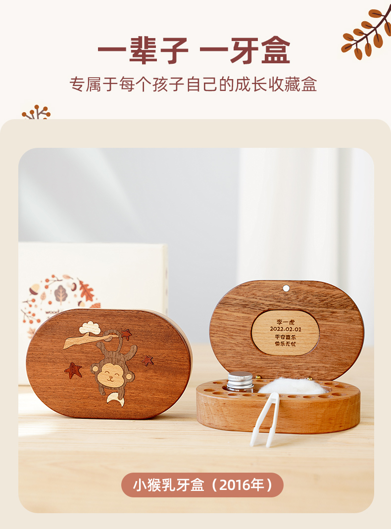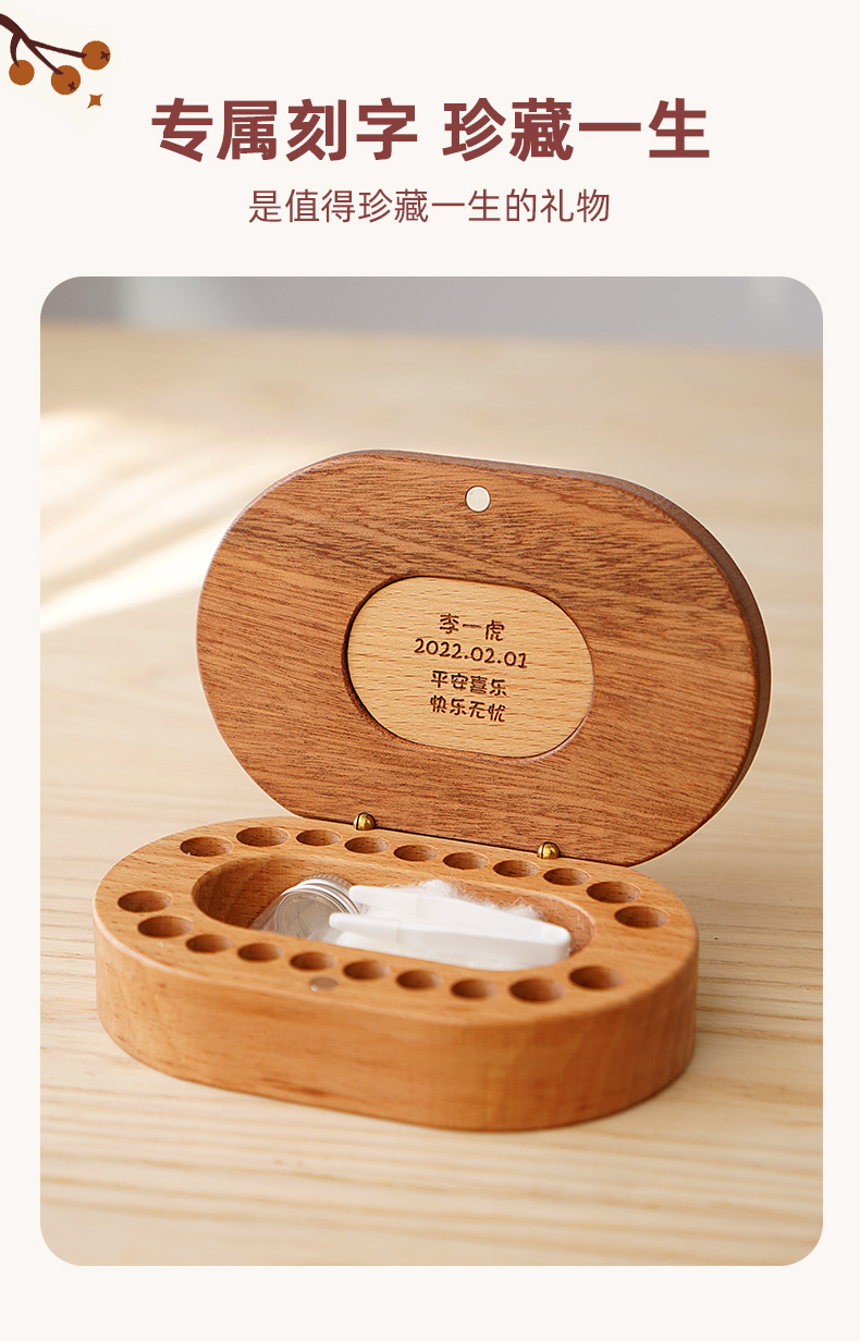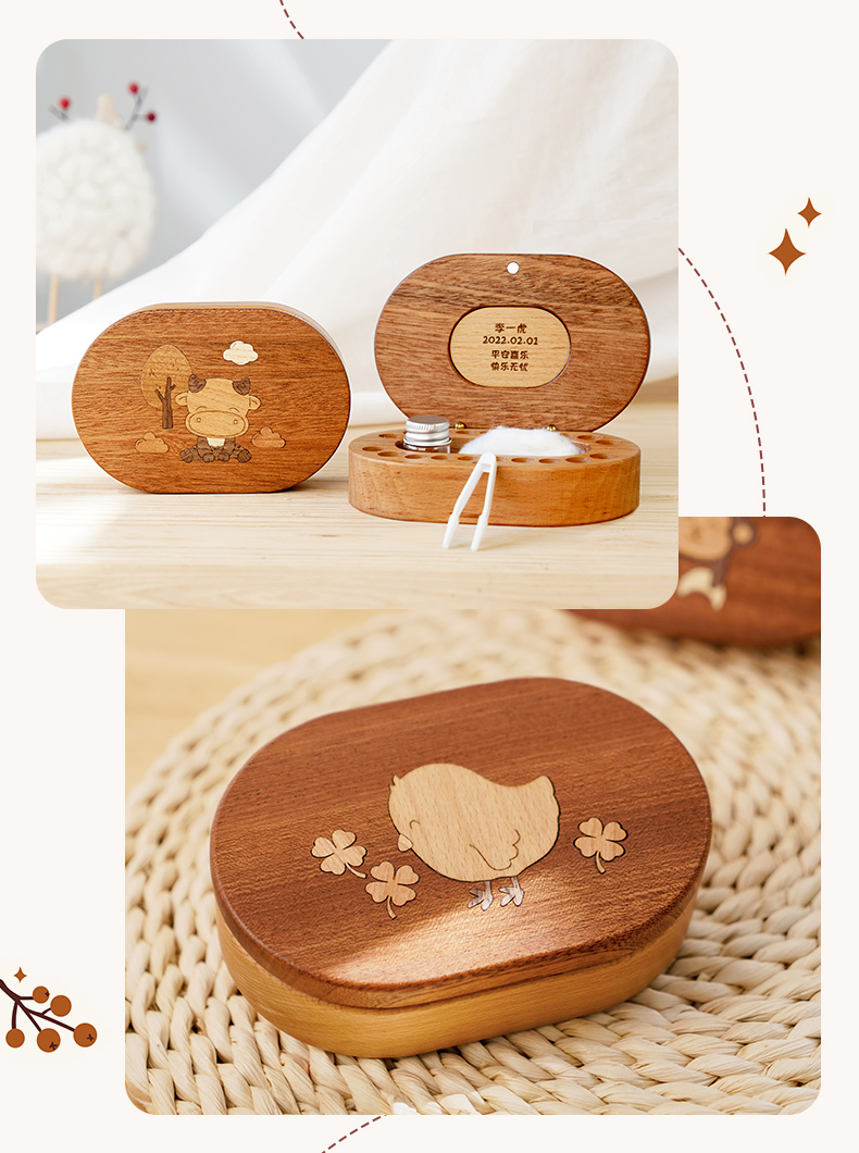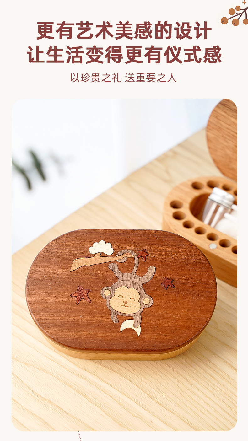 woodpapa木艺爸爸胎毛纪念品乳牙收纳盒男孩女孩宝宝胎发脐带收藏保存盒