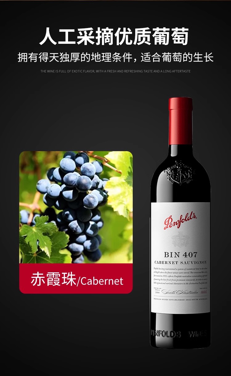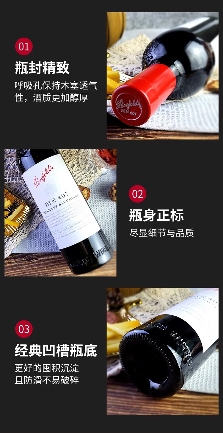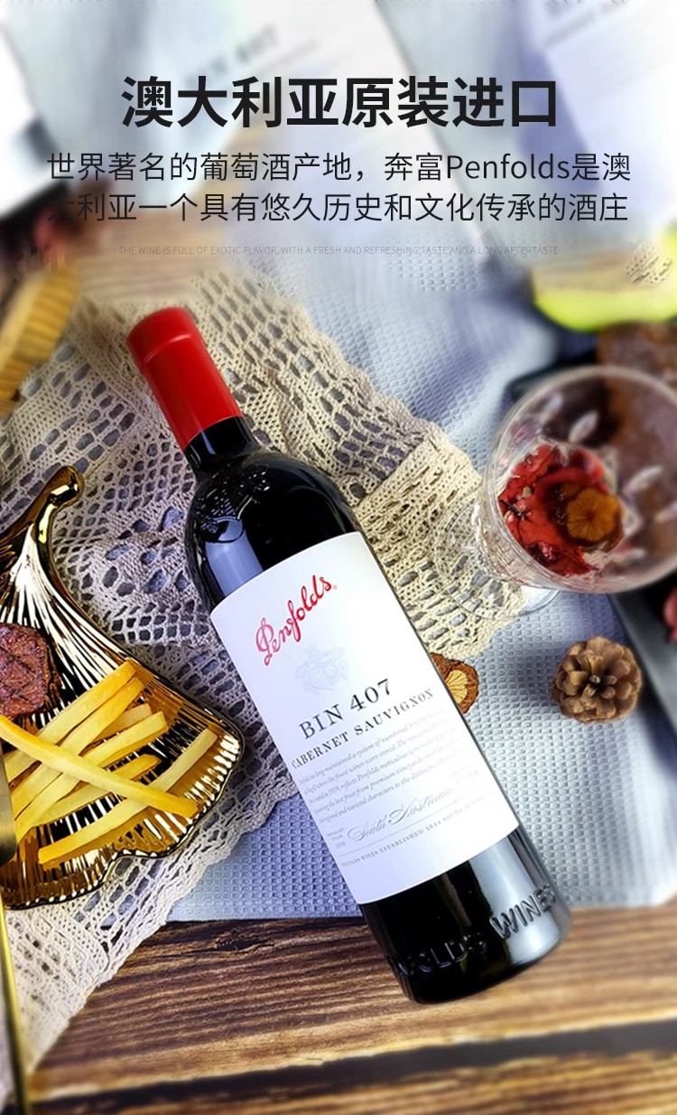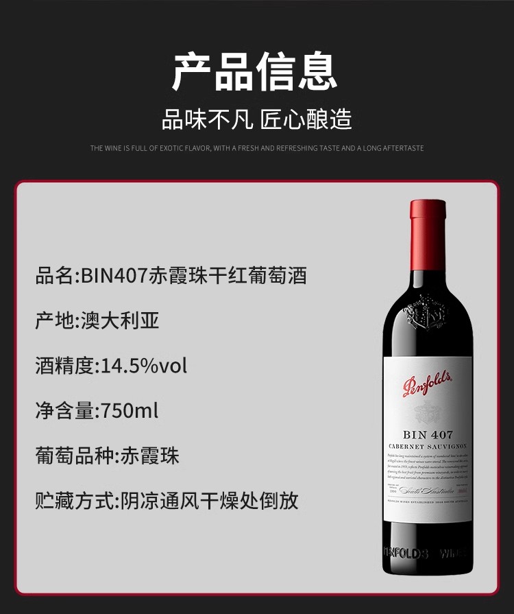 【正品行货带码】送礼首选奔富Bin407赤霞珠红葡萄酒